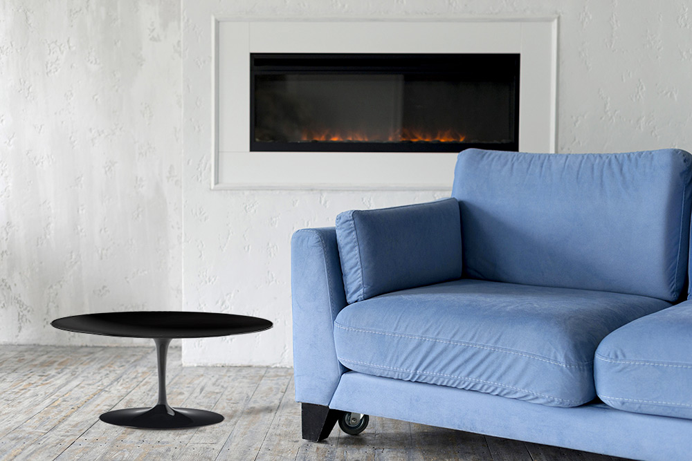 Soffbord helt tillverkat i Italien med oval skiva i svart flytande laminat och underrede i svart polerad aluminium . Materialen som används för konstruktion ger kvalitet och hållbarhet till detta fantastiska ovala soffbord. Detta är ett designelement som lämpar sig för att ingå i alla typer av möbler och miljöer i hemmet då dess ovala form och enkla, raffinerade linjer gör den perfekt för att möblera med stil och smak. Original och karaktäristiskt, det gör rummet unikt och lämpligt för alla tillfällen och användningstillfällen.