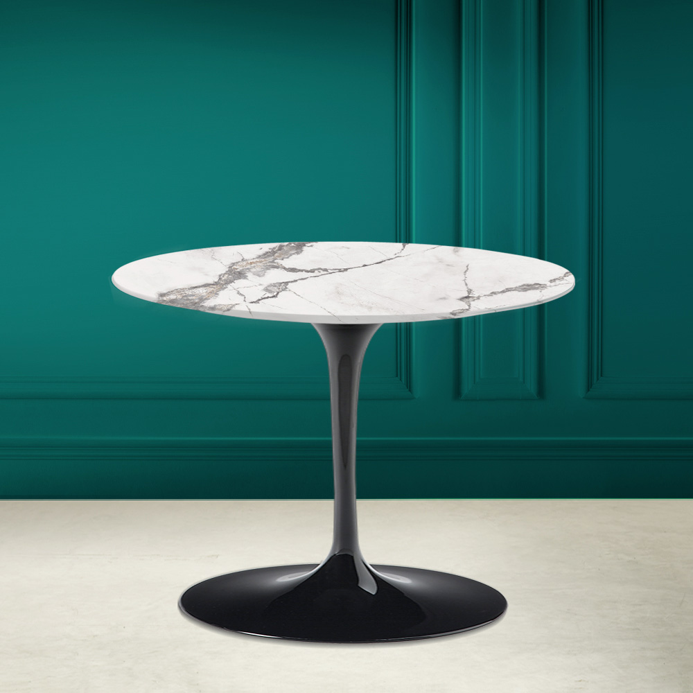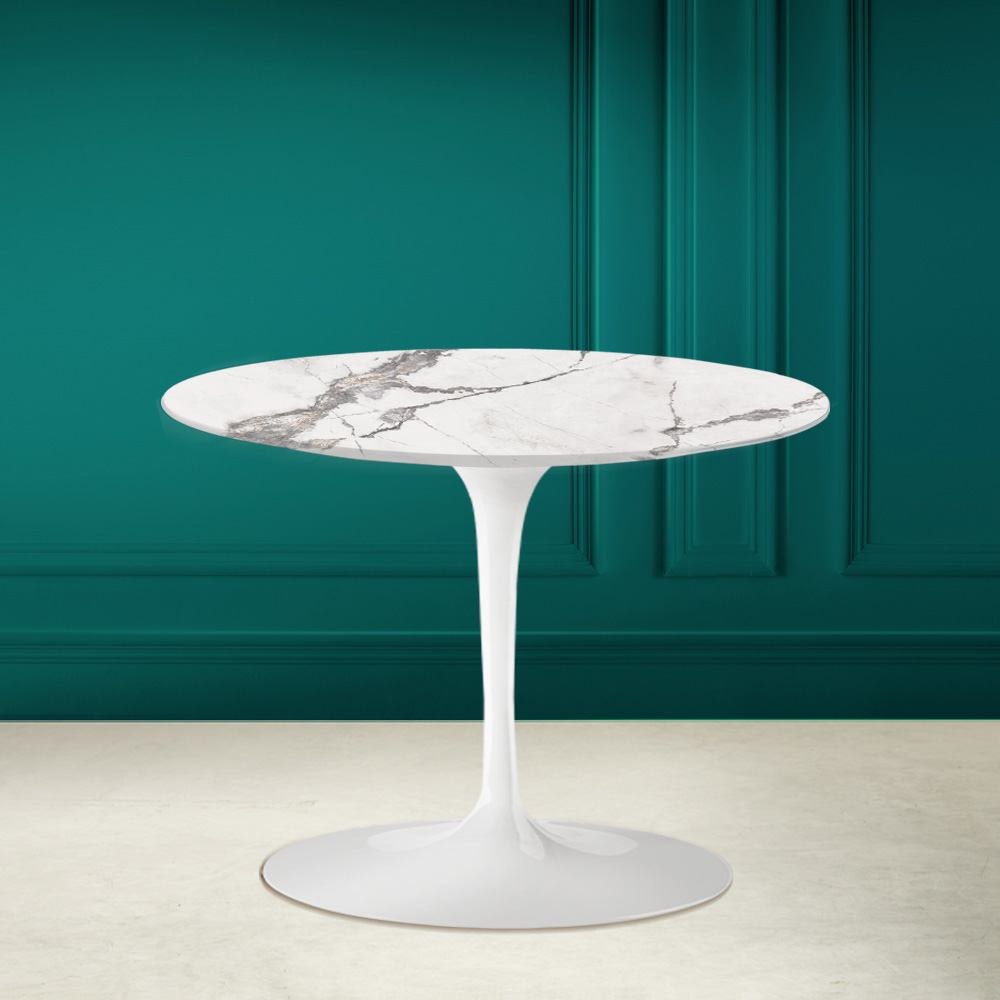 Runt soffbord med osynlig utvald keramisk skiva och polerad aluminium underrede Made in Italy