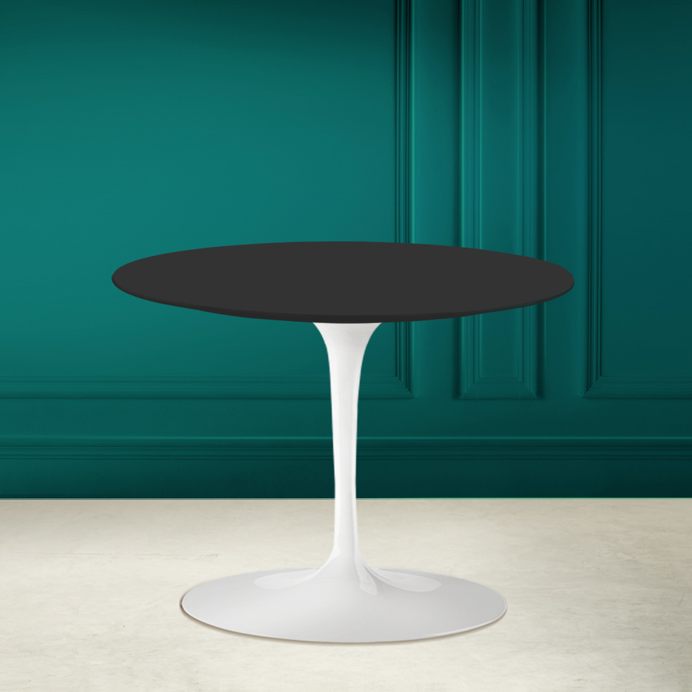Runt soffbord med mjuk svart keramisk skiva och polerad aluminium underrede Made in Italy