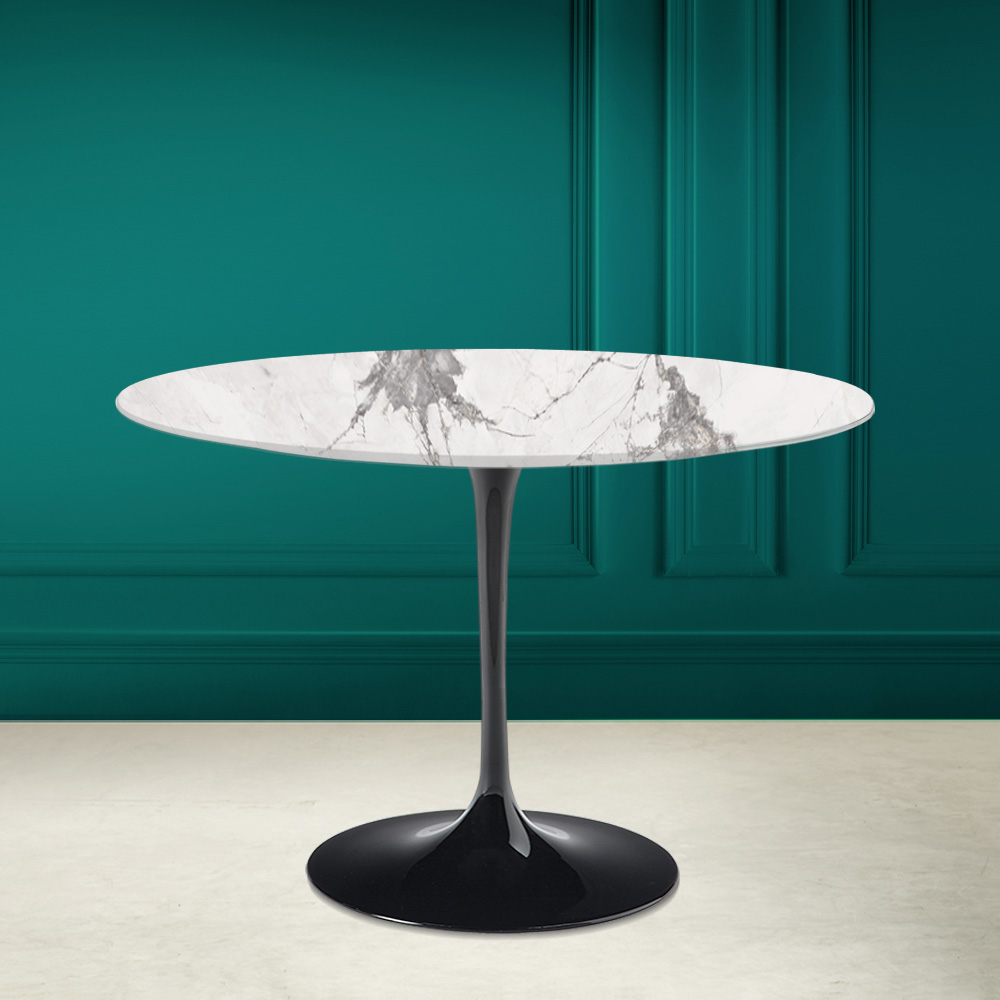 Matbord med rund skiva i invisible select keramik och underrede i polerad aluminium Made in Italy