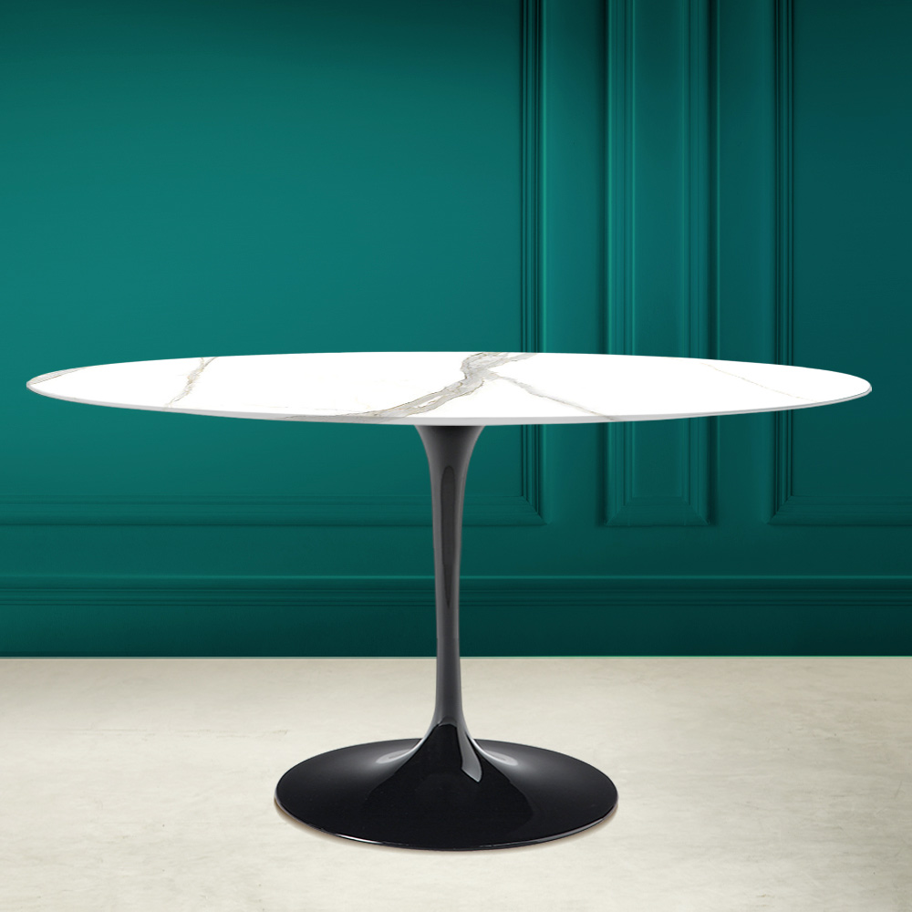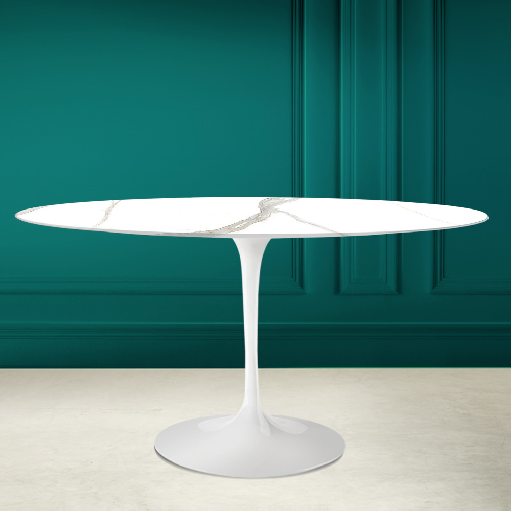 Matbord med oval skiva i calacatta michelangelo keramik Made in Italy
