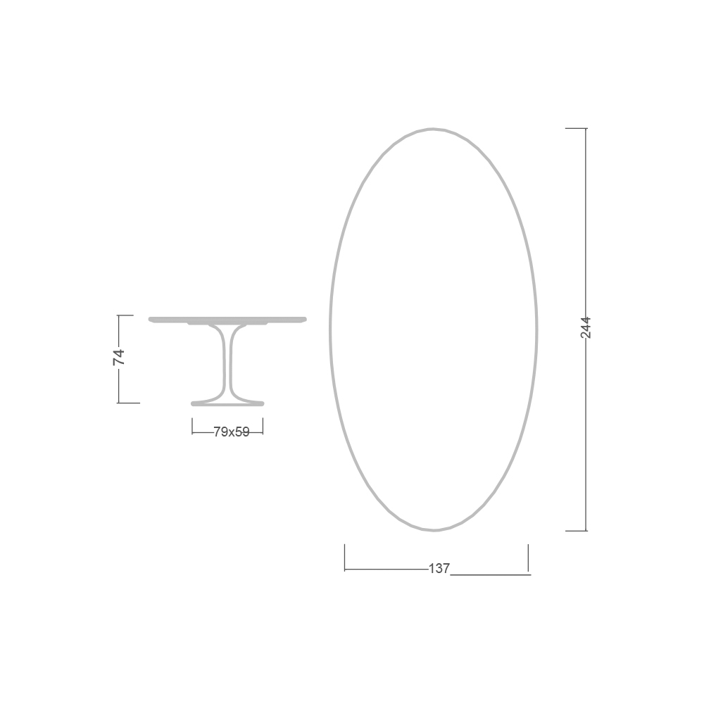 - Bordsskiva: 244 x 137 / Oval bas: 79 x 59 cm x H 73 cm