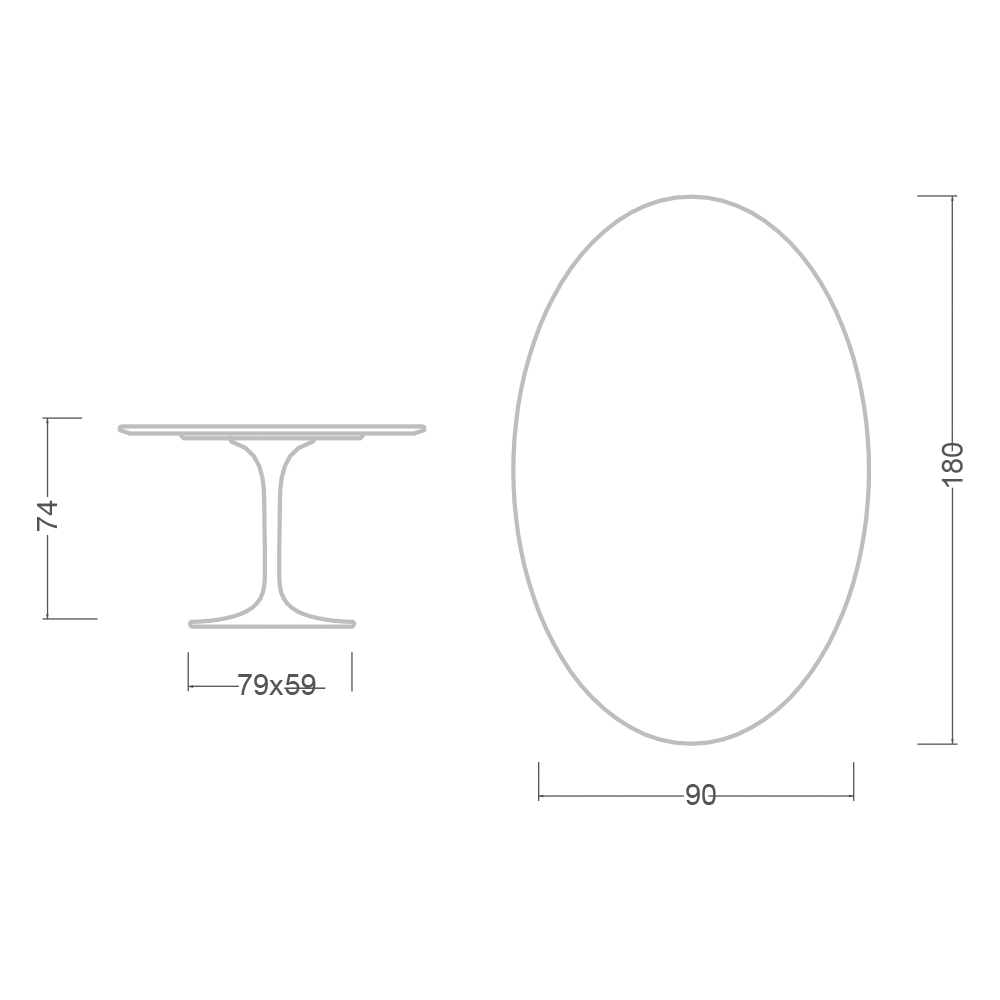- Bordsskiva: 180 x 90 / Oval bas: 79 x 59 cm x H 73 cm