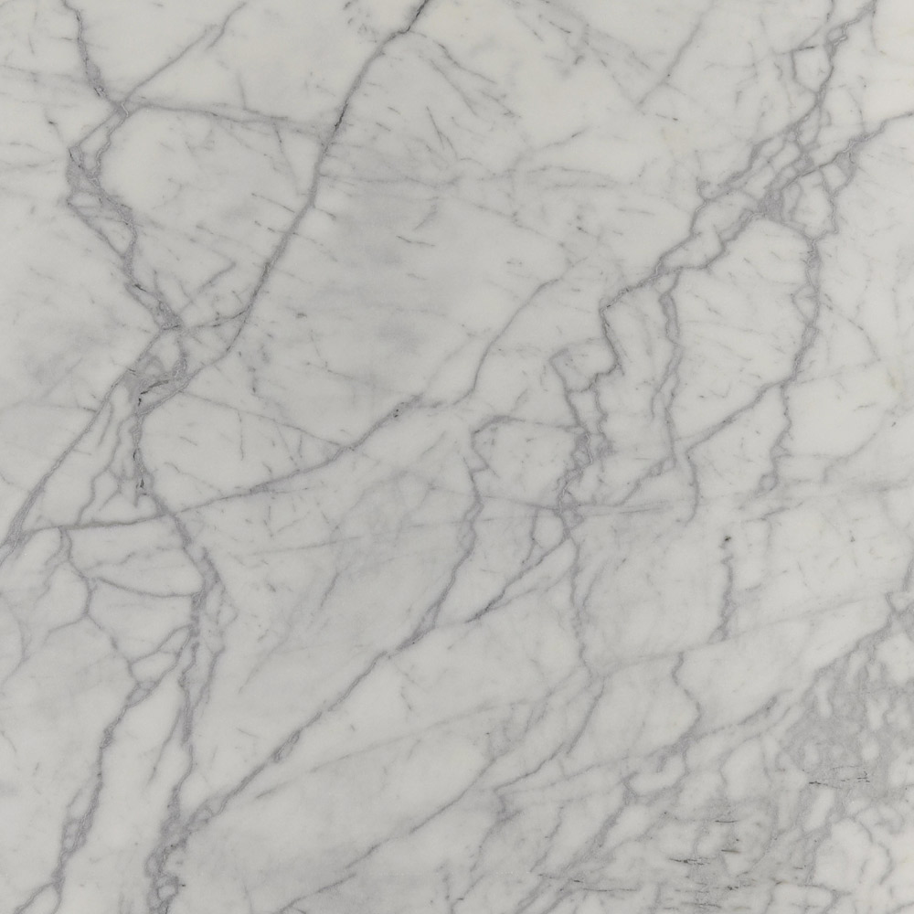 smak och personlighet. Carrara statuarietto marmorskivan och den polerade aluminiumbasen ger