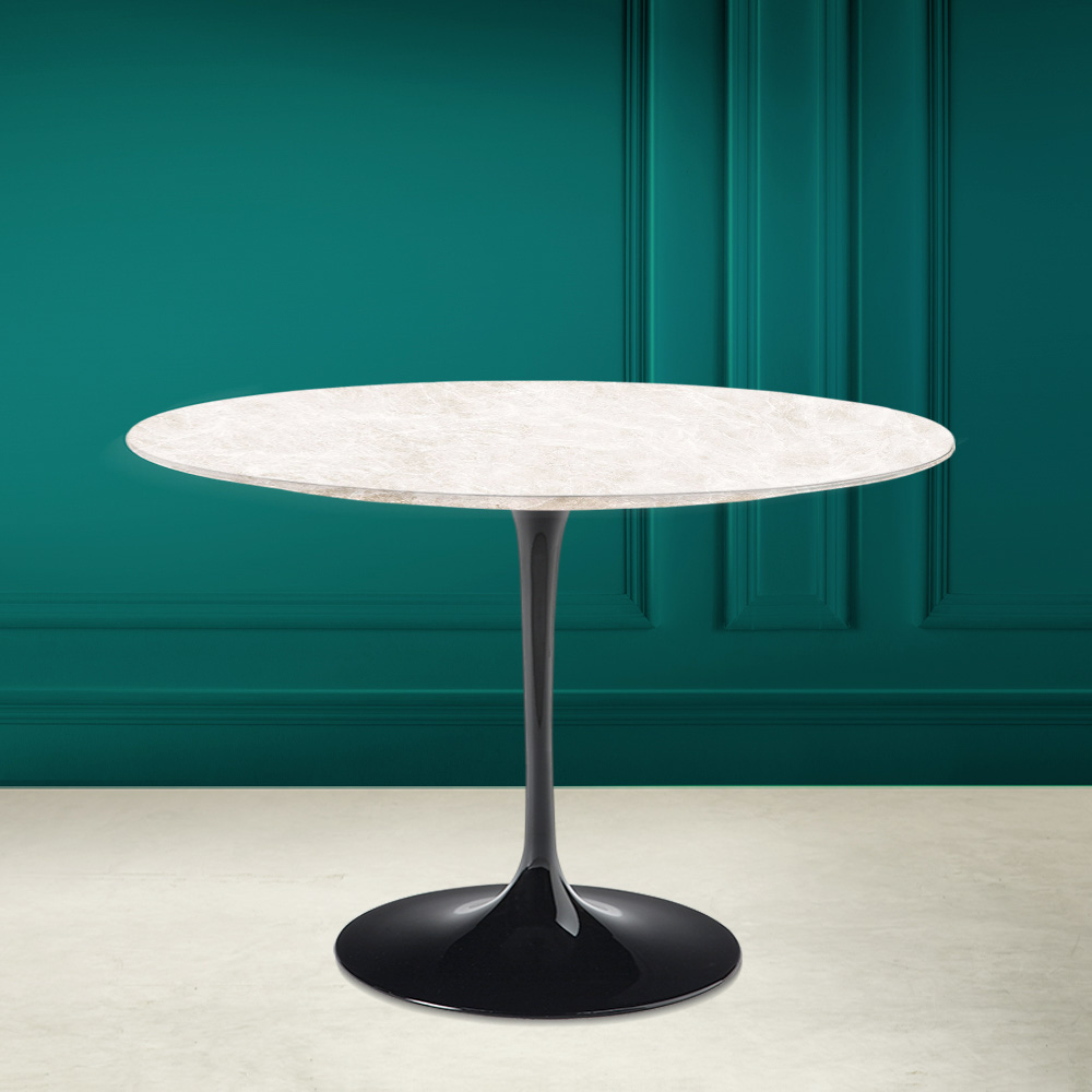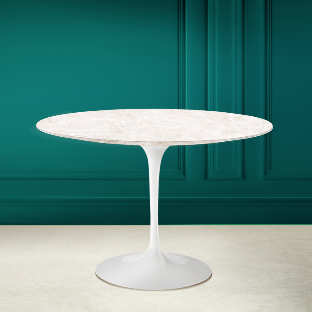 Matbord med rund skiva i diamond cream keramik Made in Italy