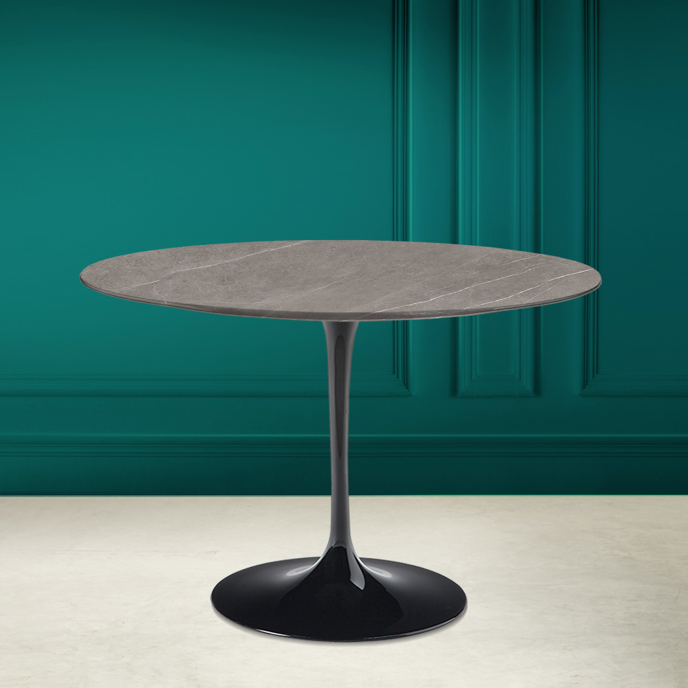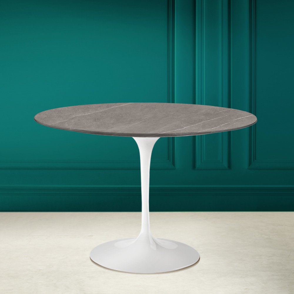 Matbord med rund skiva i grå stenkeramik Tillverkad i Italien