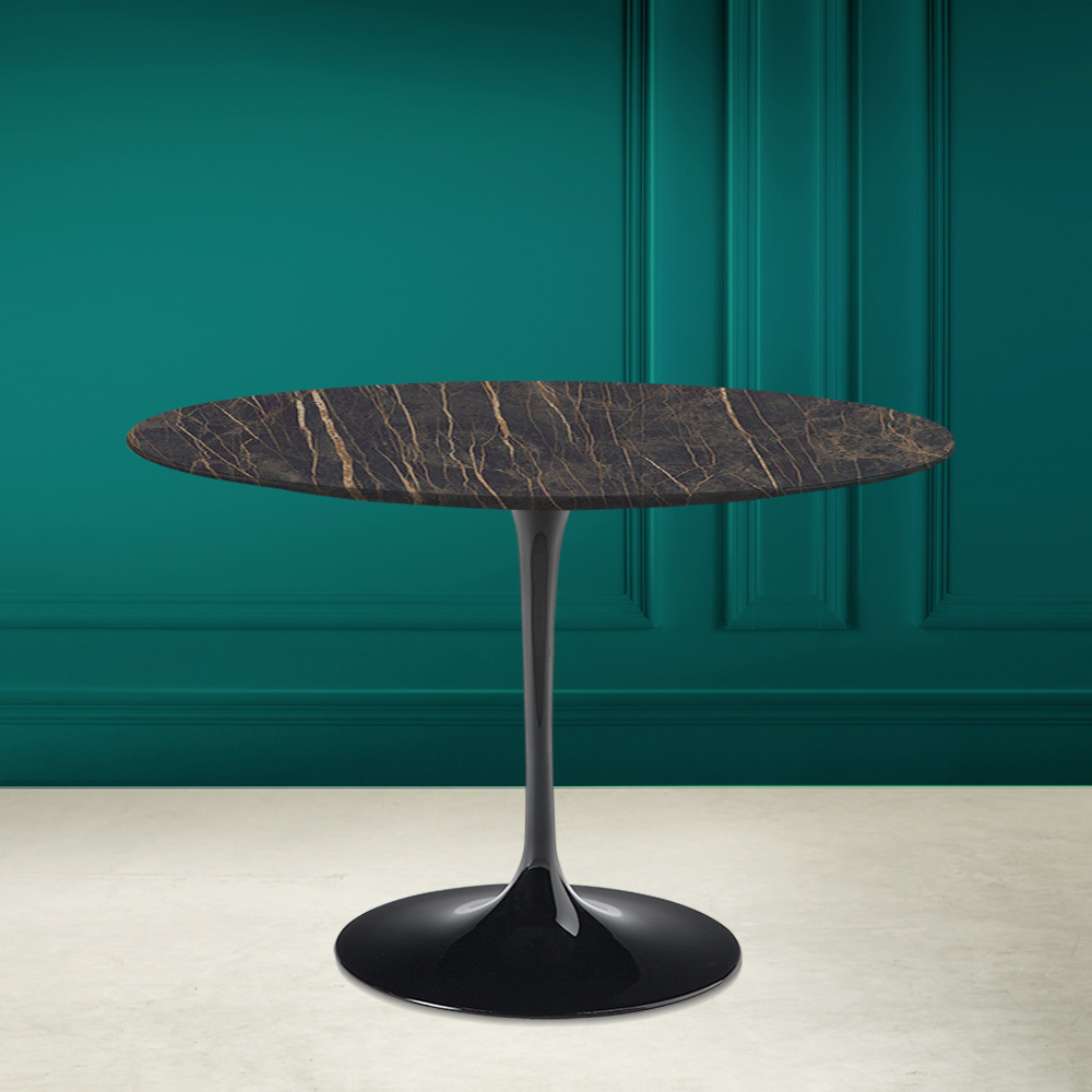 Matbord med rund skiva i noir desire keramik Tillverkad i Italien