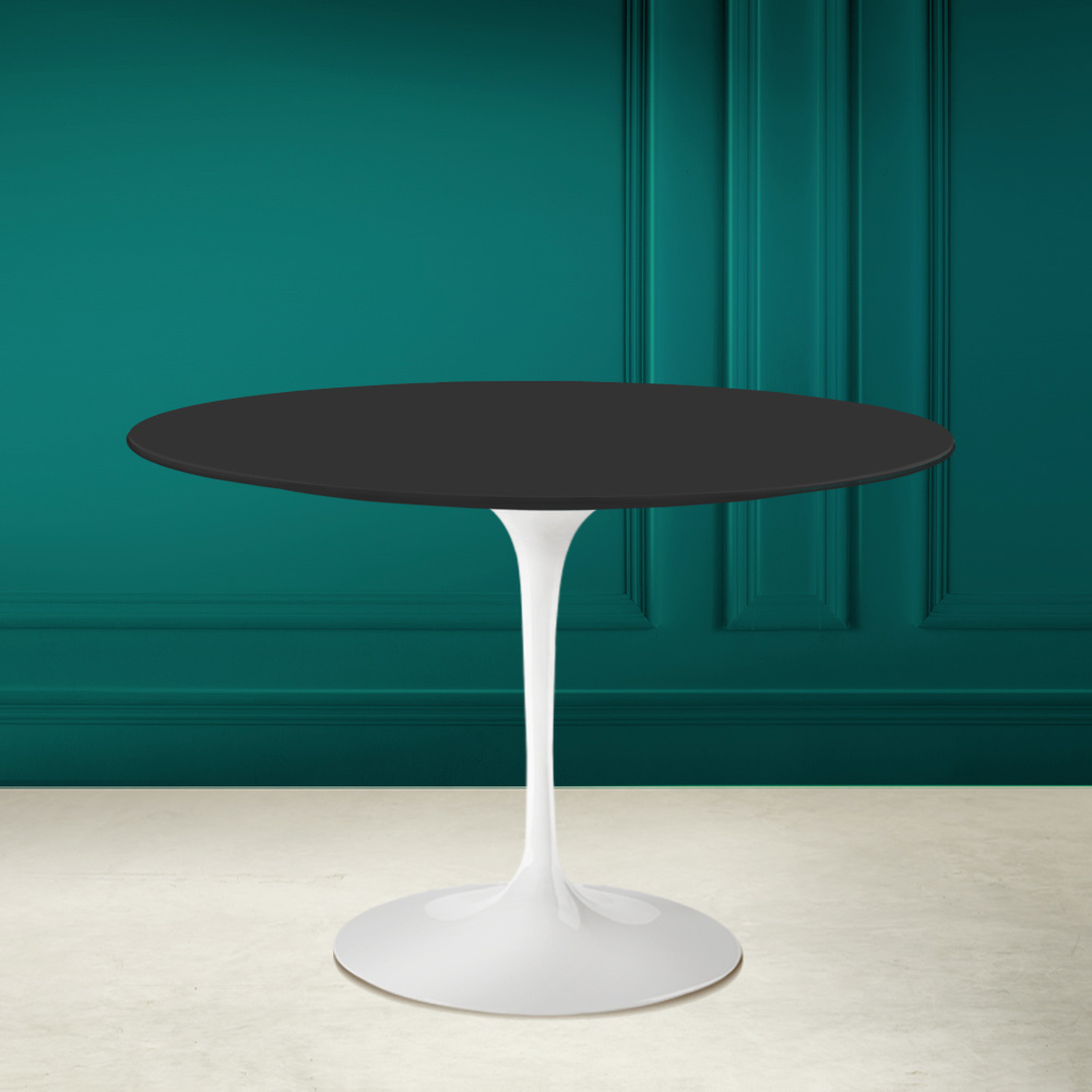 Matbord med rund skiva i Nero soft ceramic och underrede i polerad aluminium Made in Italy