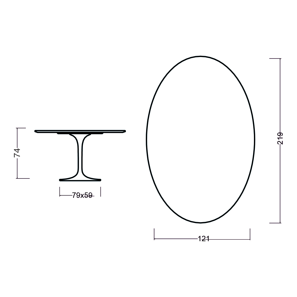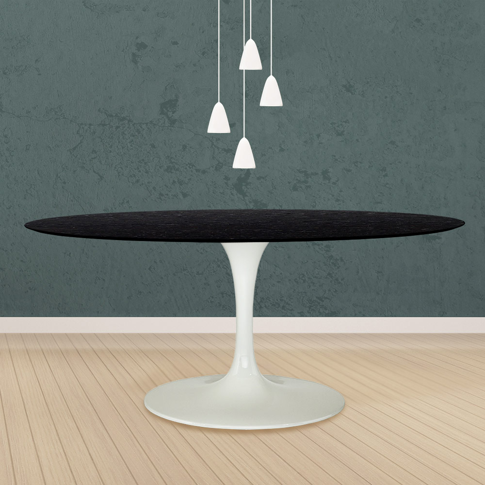 Ovalt matbord i svartbetsad ek och underrede i polerad aluminium Made in Italy