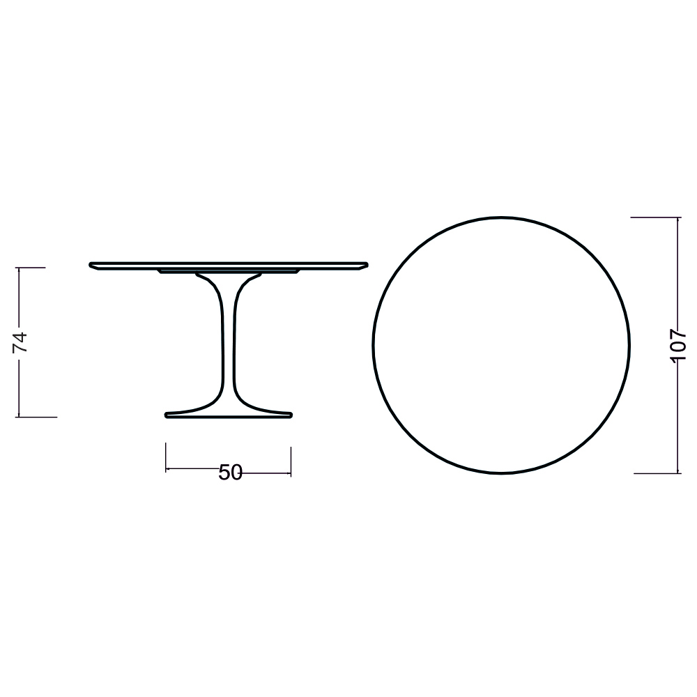 - Bordsskiva diameter 107 x höjd 74 cm / Basdiameter 50 cm