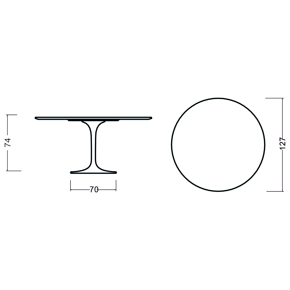 - Bordsskiva diameter 127 x höjd 74 cm / Underredets diameter 70 cm