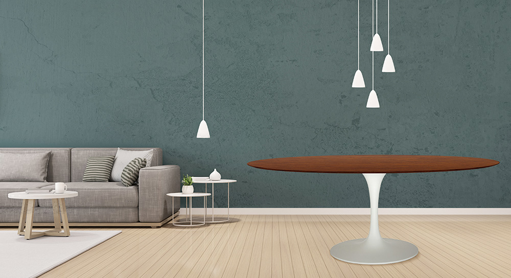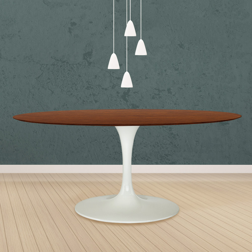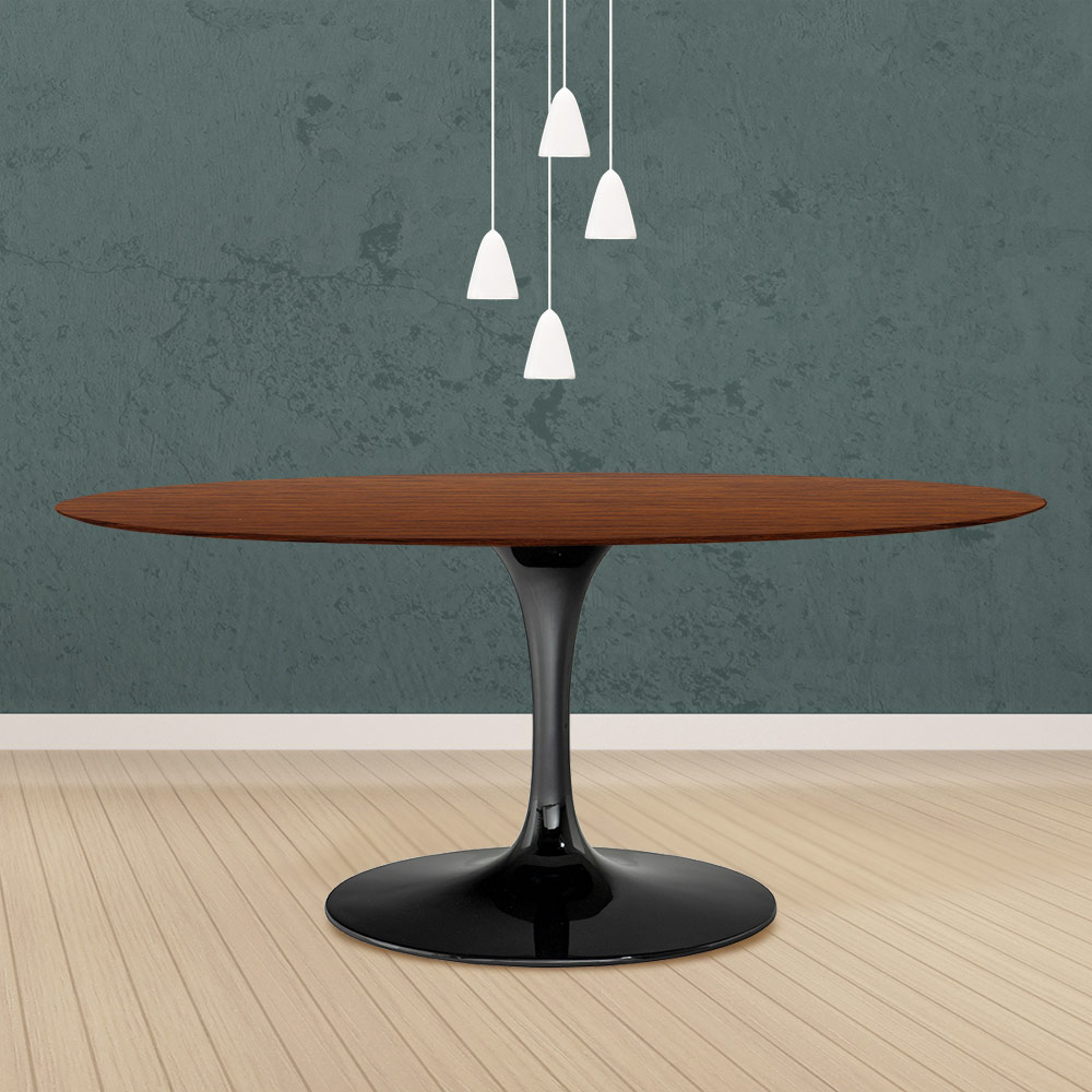 Ovalt matbord i mörk valnötsbetsad ek och underrede i polerad aluminium Made in Italy