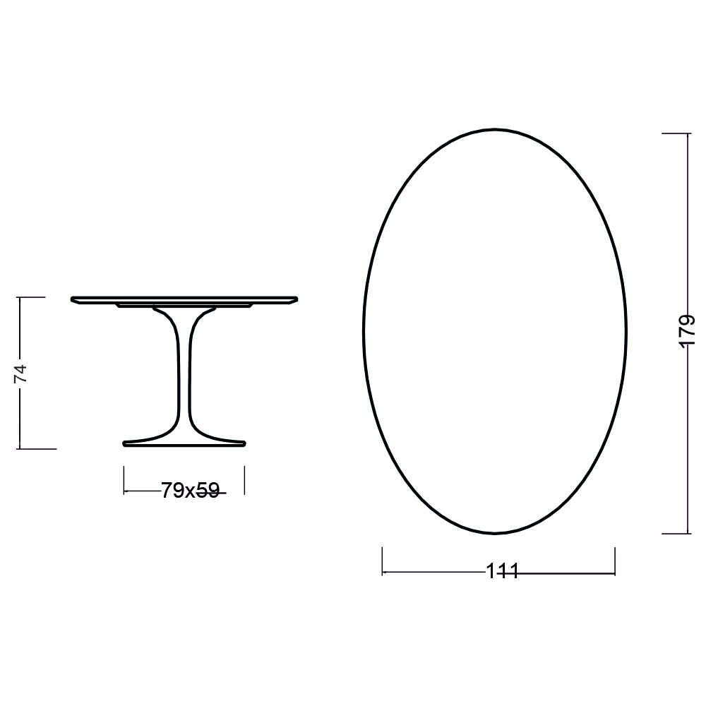 Matbord med oval skiva i