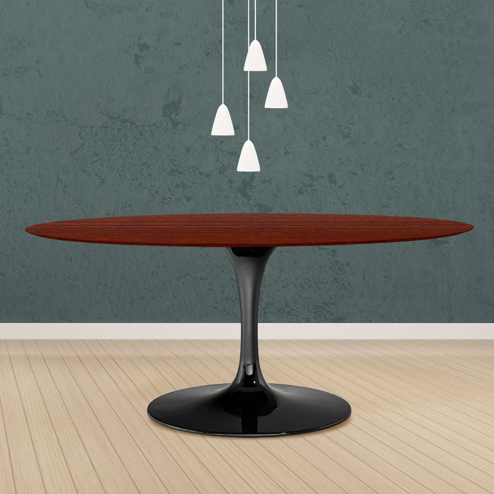 Ovalt matbord i rosenträbetsad ek och underrede i polerad aluminium Made in Italy