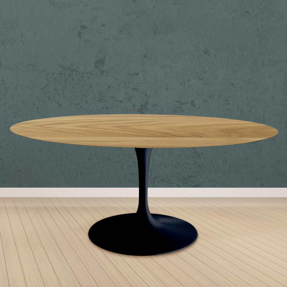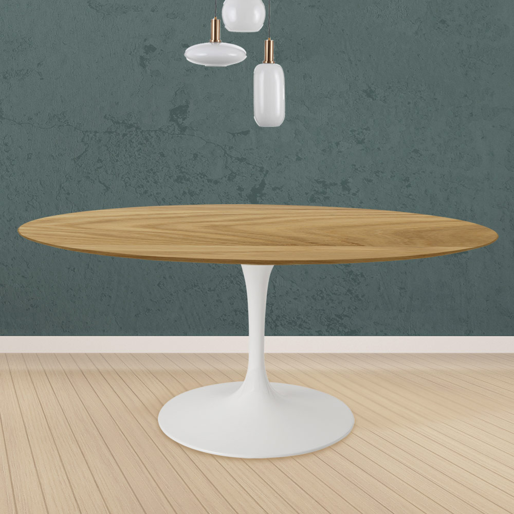 Runt matbord i naturlig ek och polerad aluminiumfot Made in Italy