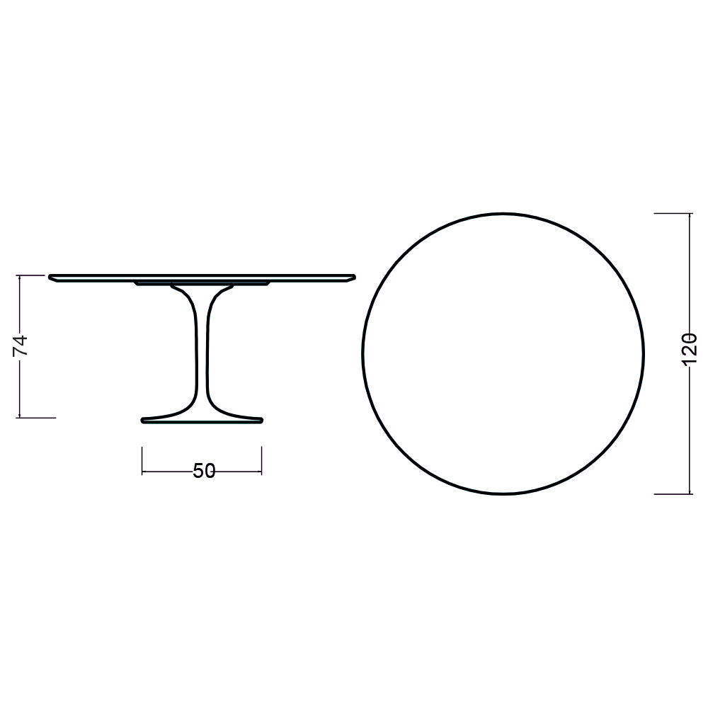 - Bordsskiva diameter 120 x höjd 74 cm / Basdiameter 50 cm