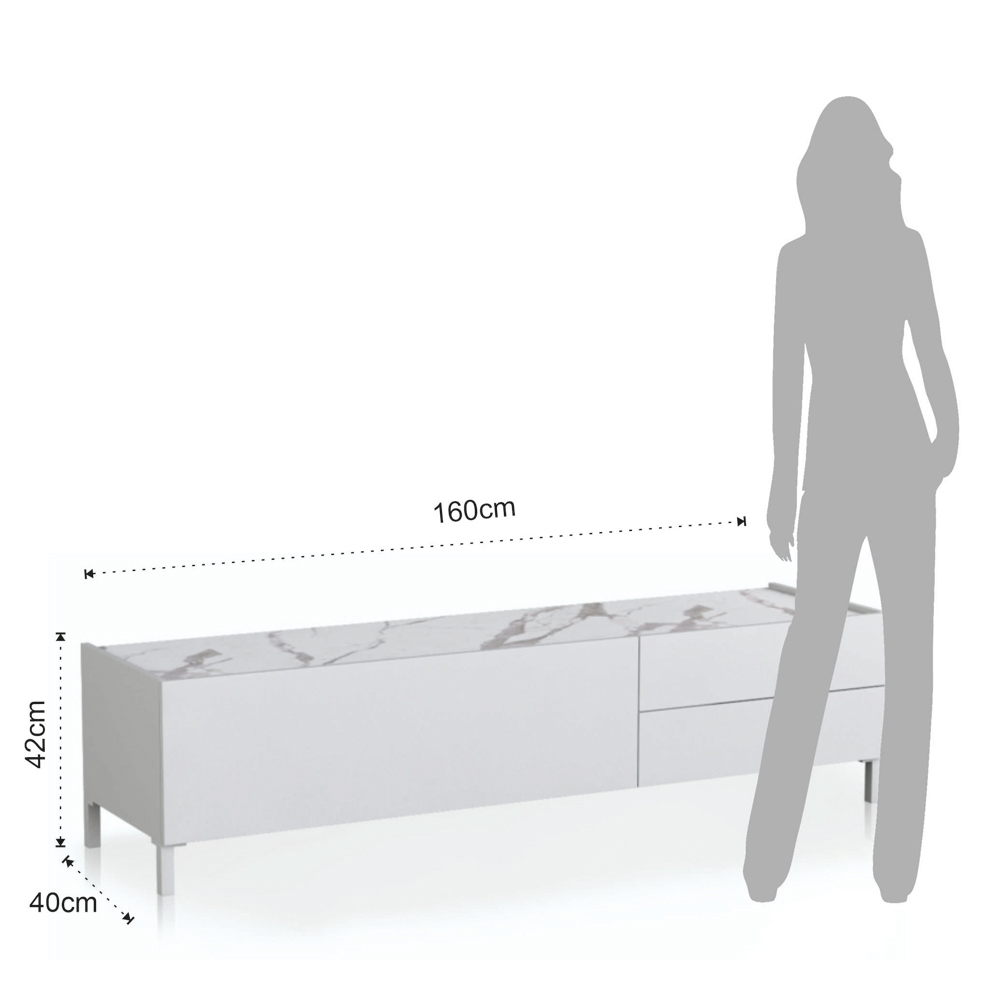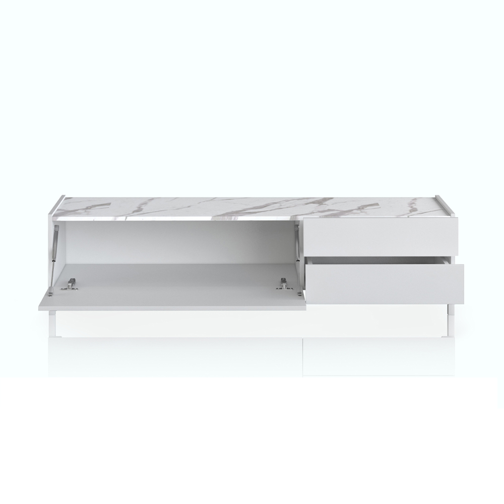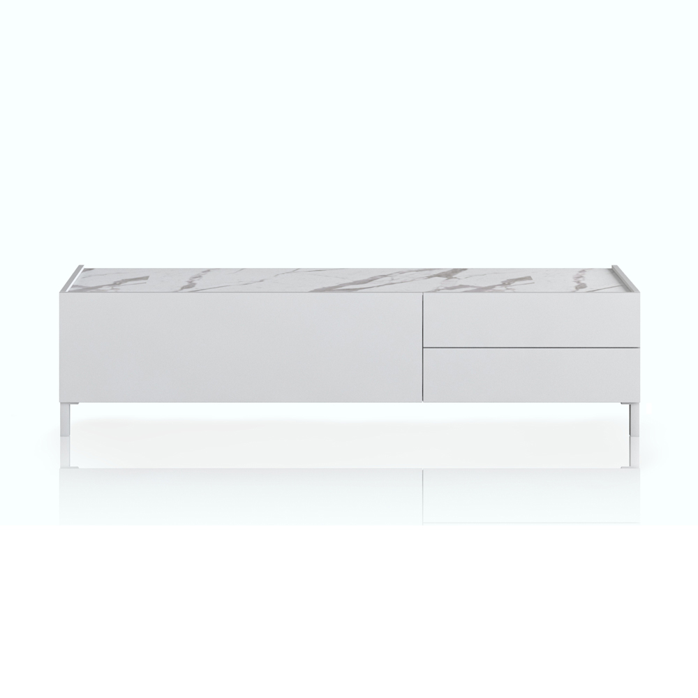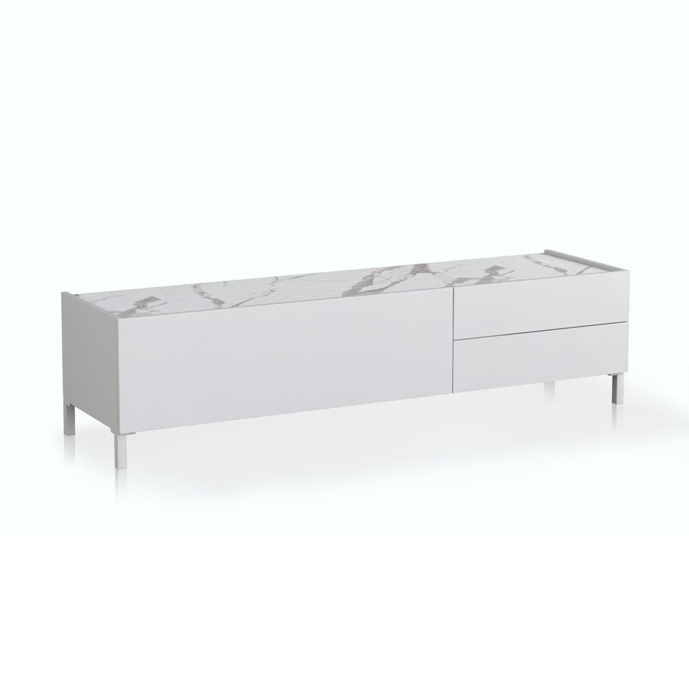 TV-bänk i trä med 1 vikdörr och 2 lådor