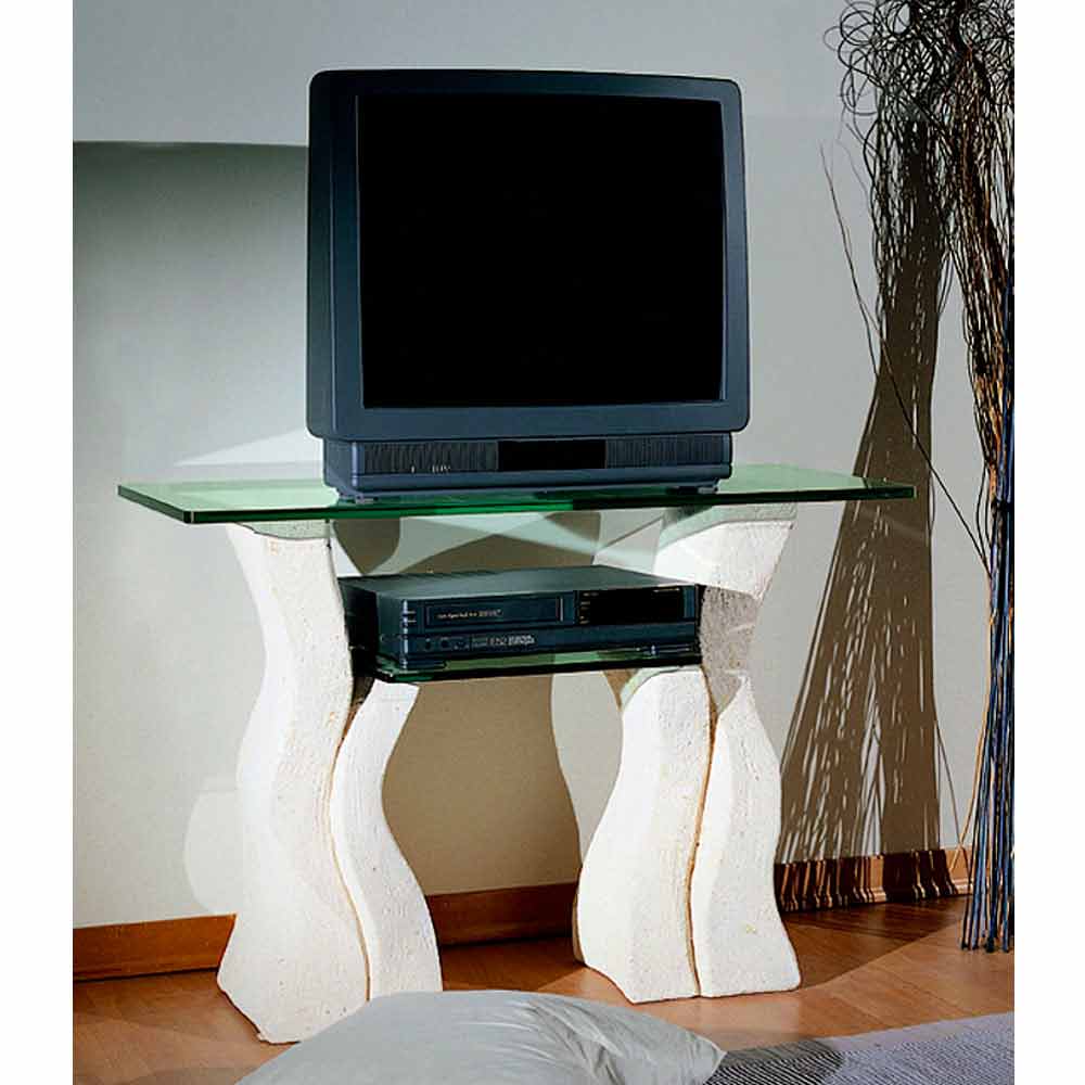 Portatv Tillverkad i Italien i Vicenza natursten och kristaller, präglas de två snidade baserna av den eleganta och dynamiska formen av vågan och kompletteras av de två 15 mm tjocka glasskivorna. Stenarna behandlas med ett impregneringsvatten tvättbart och miljövänligt för enkel rengöring.