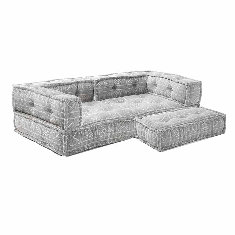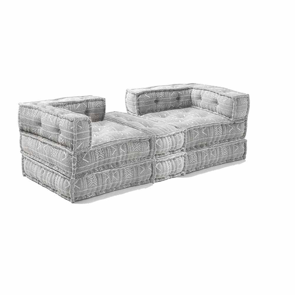 Två sits soffa klädd i etnisk design färgat tyg - fiber