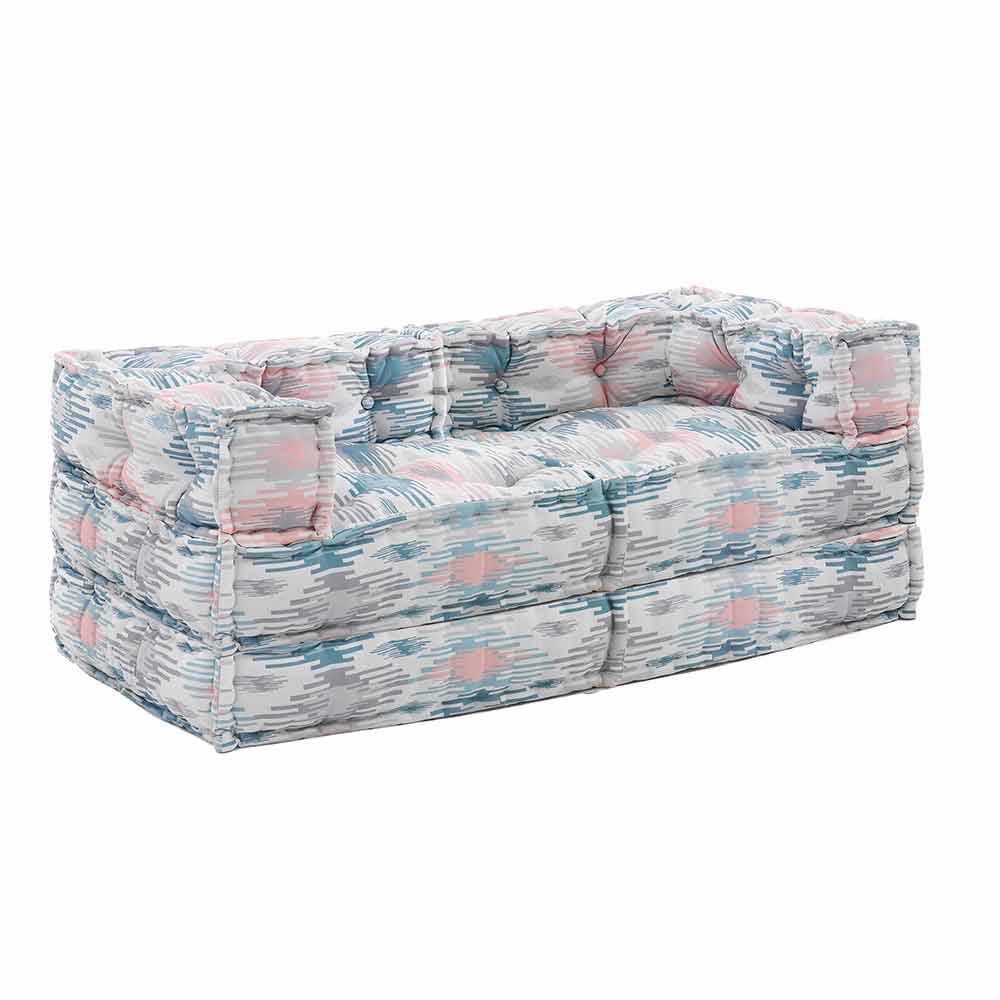 Två sitsig etnisk designträdgårdsoffa i vattenavvisande tyg.