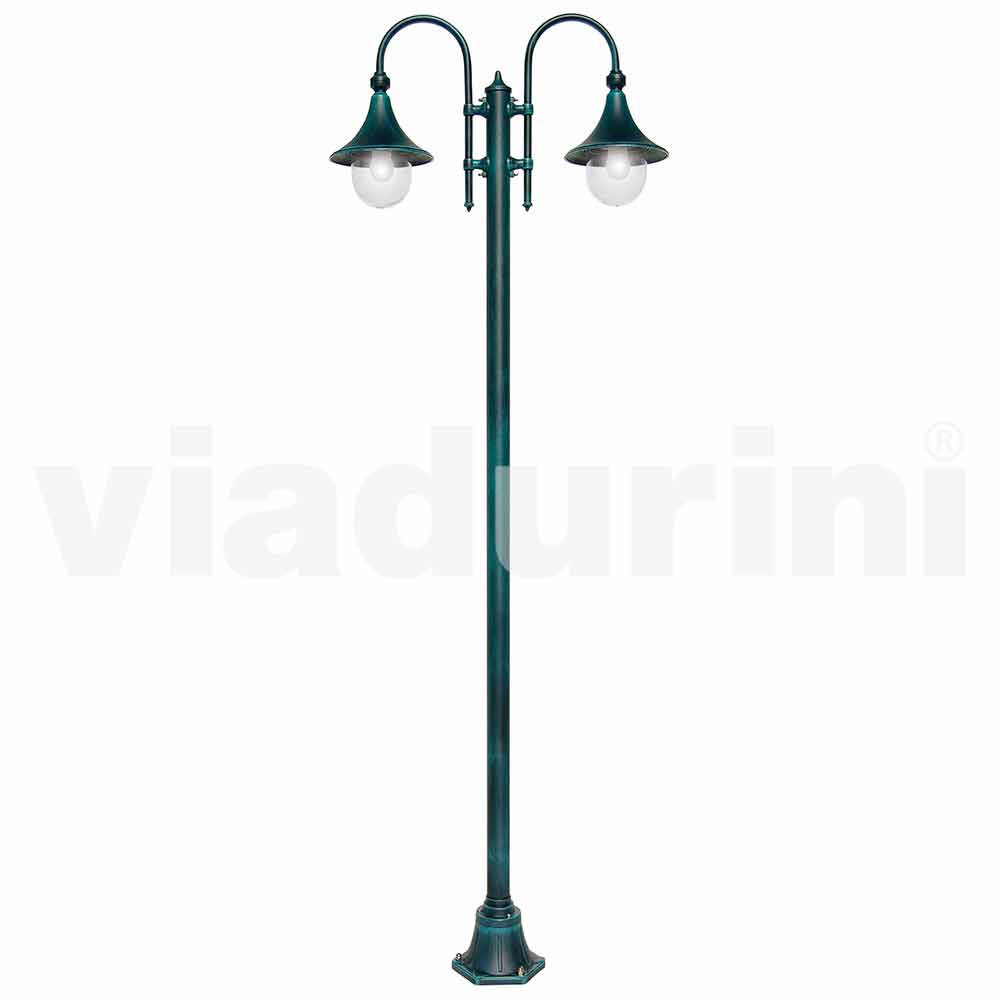 Tvåljus utomhuslyktstolpe i aluminium tillverkad i Italien, Anusca