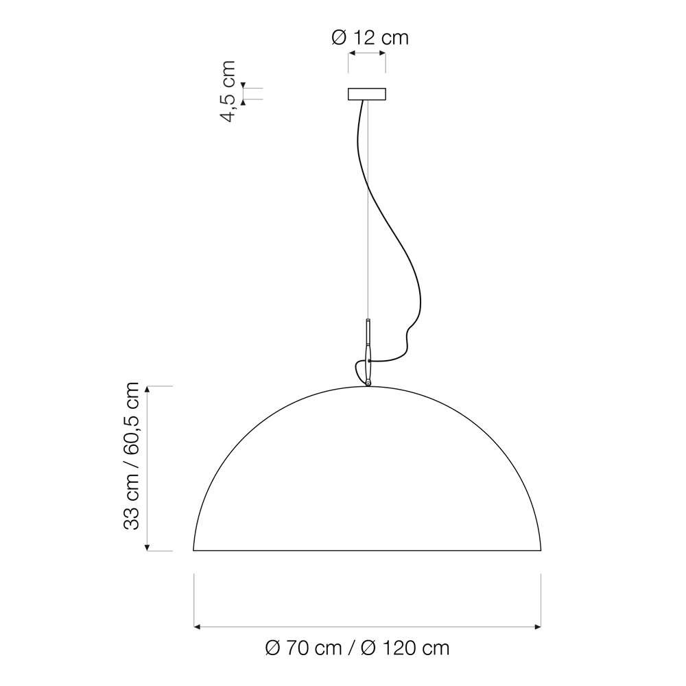 - Ø 120 cm 60,5 (h) cm Rosett: Ø 12x4,5 cm, glödlampa E27 max 100W / rek. 20W lysdioder.