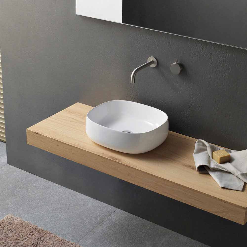 Bänkskivan keramiskt tvättställ utan överloppshål och avlopp exkluderat.