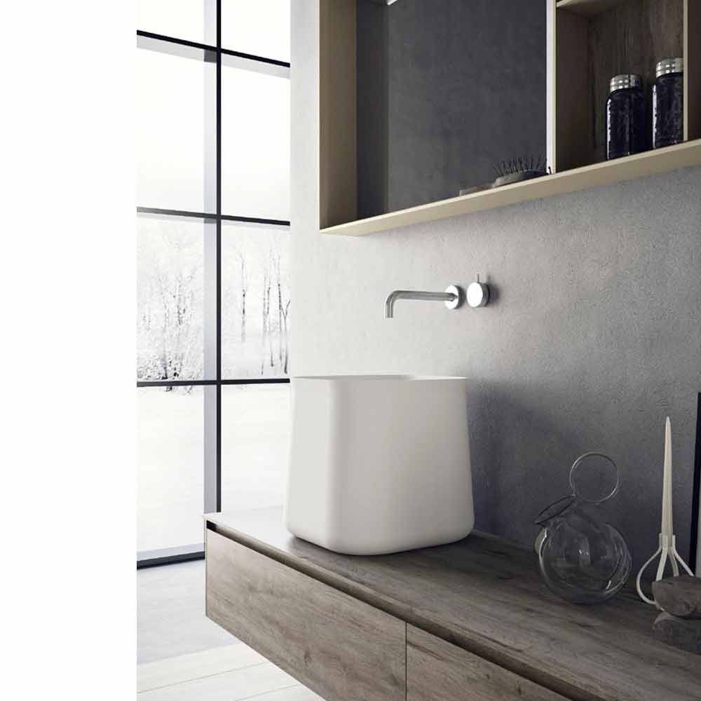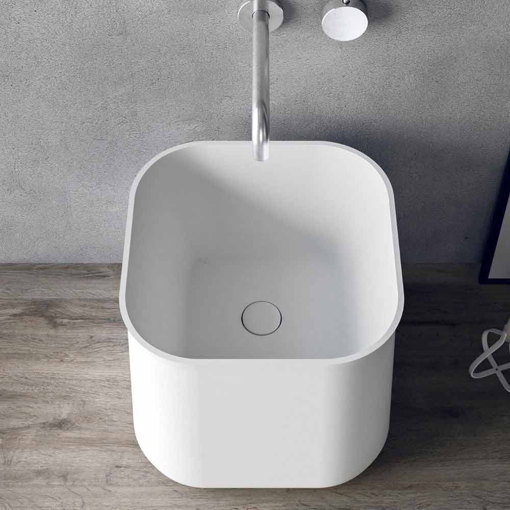 Tvättställ för bänkskivan utan överloppshål och gratis avloppsavlopp ingår, finns i två versioner: