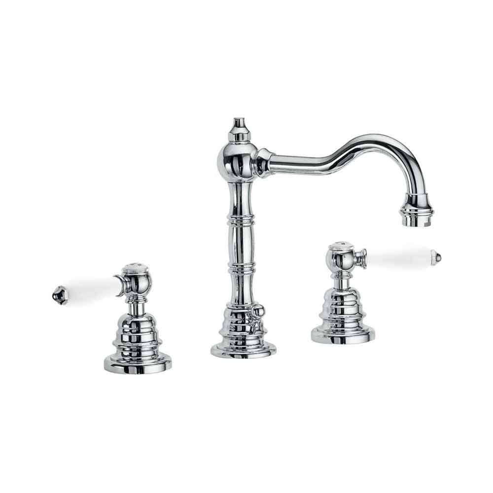 Tvättställsblandare i kromfinish mässing med en extremt klassisk design 205 mm hög och med ett centrumavstånd på 170 mm, komplett med avlopps- och pop-up-spak.