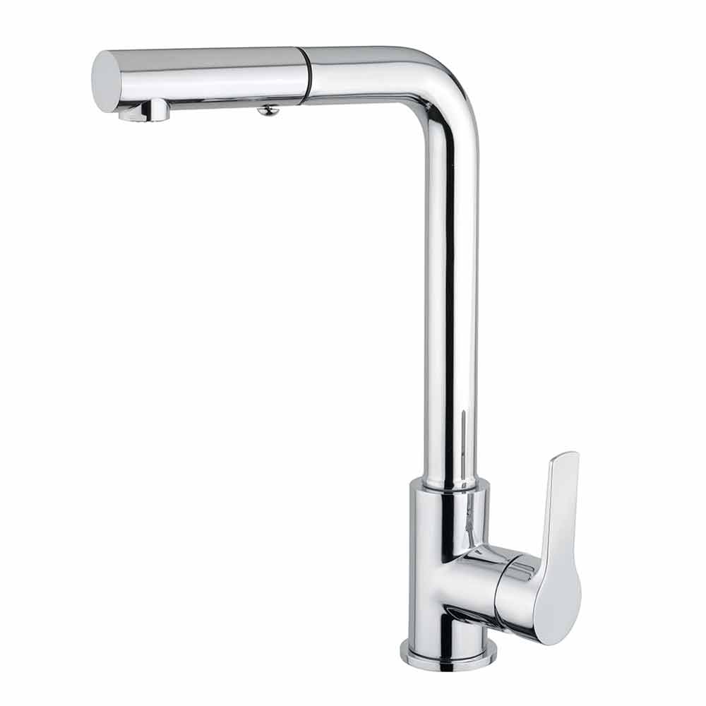 förkromad mässing . Tack vare den justerbara pipen och den 2-jet utdragbara handduschen samlas