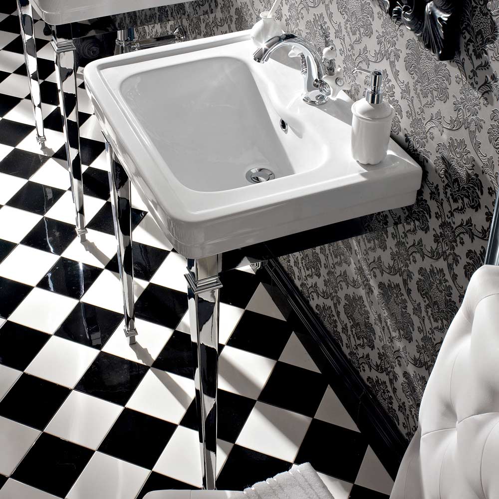 Tillverkad i Italien keramisk badrumskonsol med metallfot, vintage stil, Marwa.
