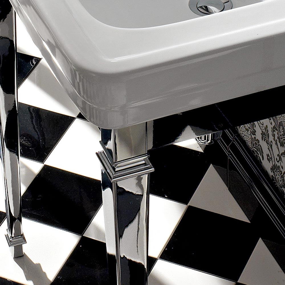 Rätt kombination av keramik och metall gör denna konsol perfekt för att dekorera alla badrumsstilar.