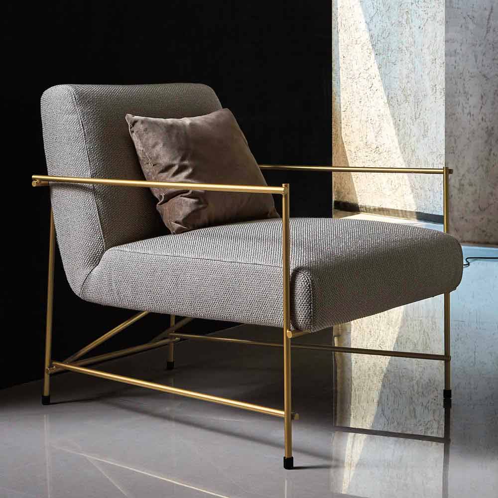 Tygfåtölj med metallkonstruktion Tillverkad i Italien, fin.