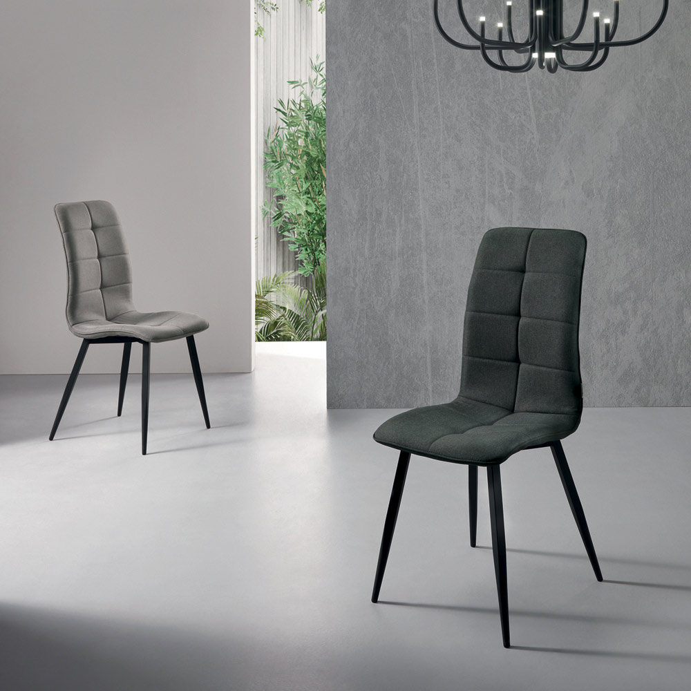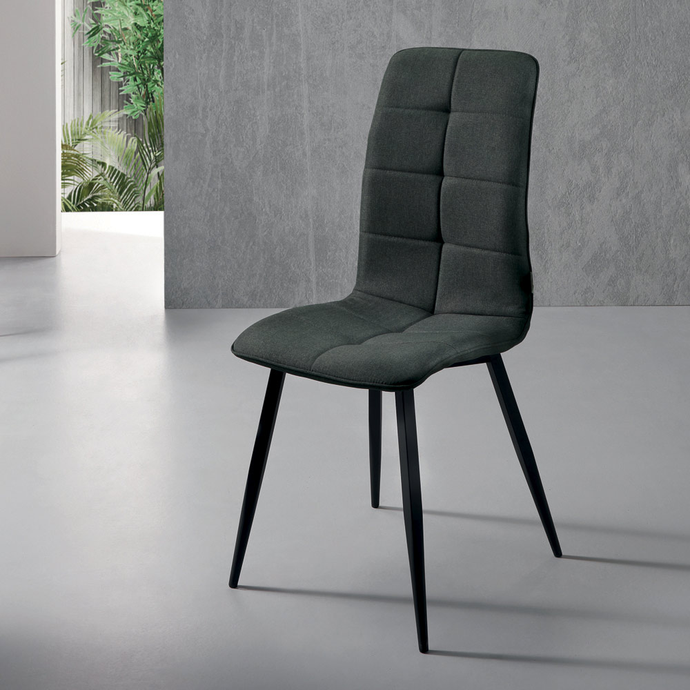 svartmålad metallstruktur . Kännetecknad av det sydda ryggstödet som ger originalitet, med en