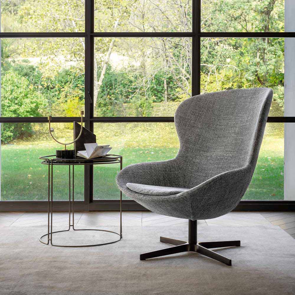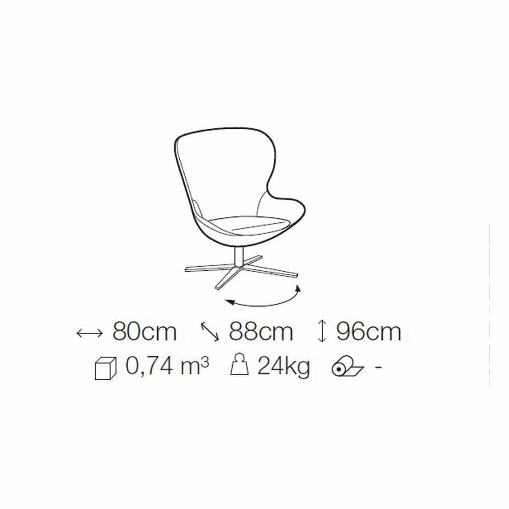 Dess struktur kännetecknas av mjuka och omslutande former och genom imponerande men kalibrerade proportioner, utformade för att ge liv till en stark känsla av välkomnande. Den speciella svängbara basen gör den ännu mer unik och speciell och samtidigt särskilt