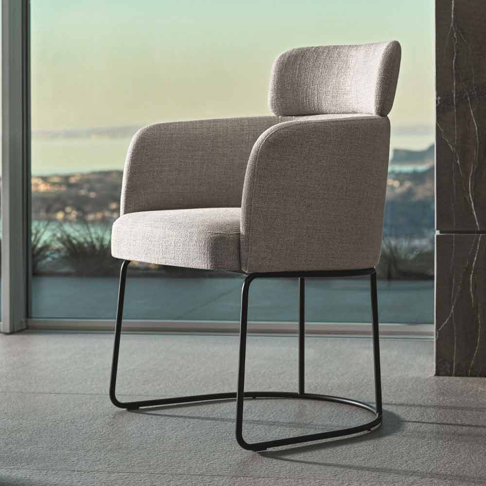 Stol klädd i tyg med hög kvalitet Made in Italy metallbas.