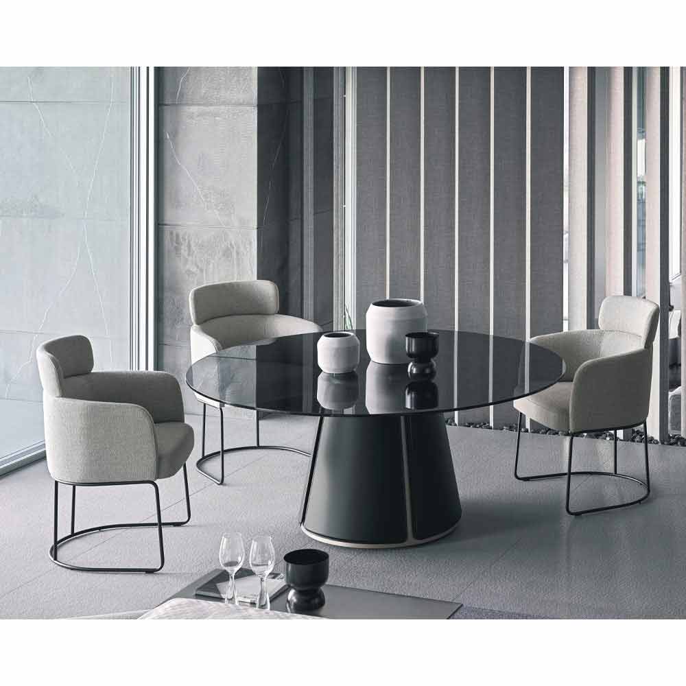 tyg (inte avtagbart). Mjuka och omslagsformer ger liv åt en särskilt modern och exklusiv inredningslösning. Tack vare sin böjda form återskapar kroppen känslan av en riktig kram, lyckas ge liv till ett litet bo där man kan bli bortskämd och koppla av för att tillbringa underbara stunder under luncher och middagar med vänner.