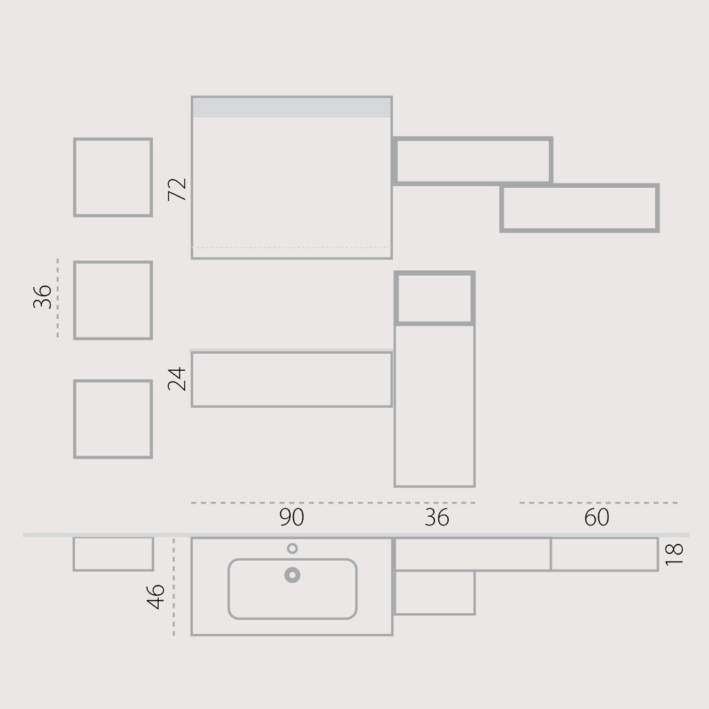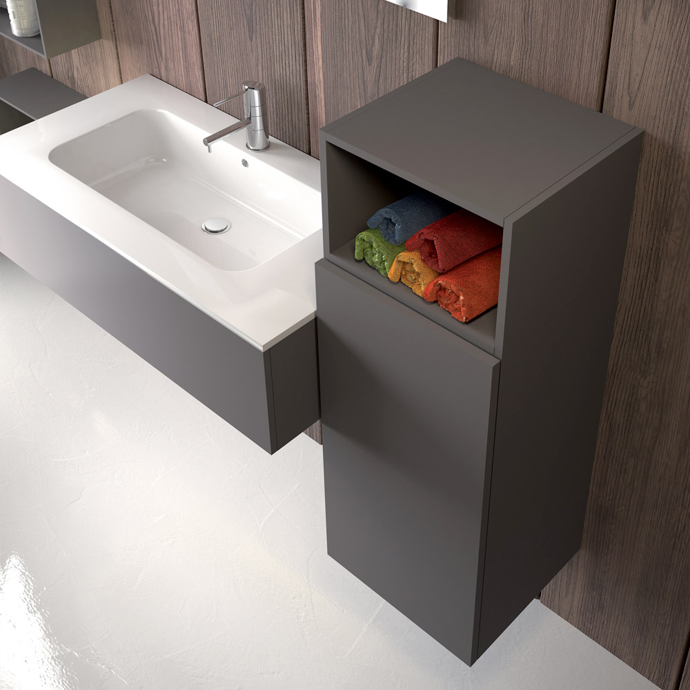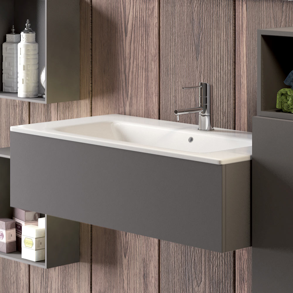Napoli är en uppsättning av upphängda badrumsmöbler gjorda med olika material och finish och med möjlighet till otaliga kombinationer tack vare de olika elementen, för ett resultat av flexibla geometrier för ett badrum utanför de vanliga mönstren.