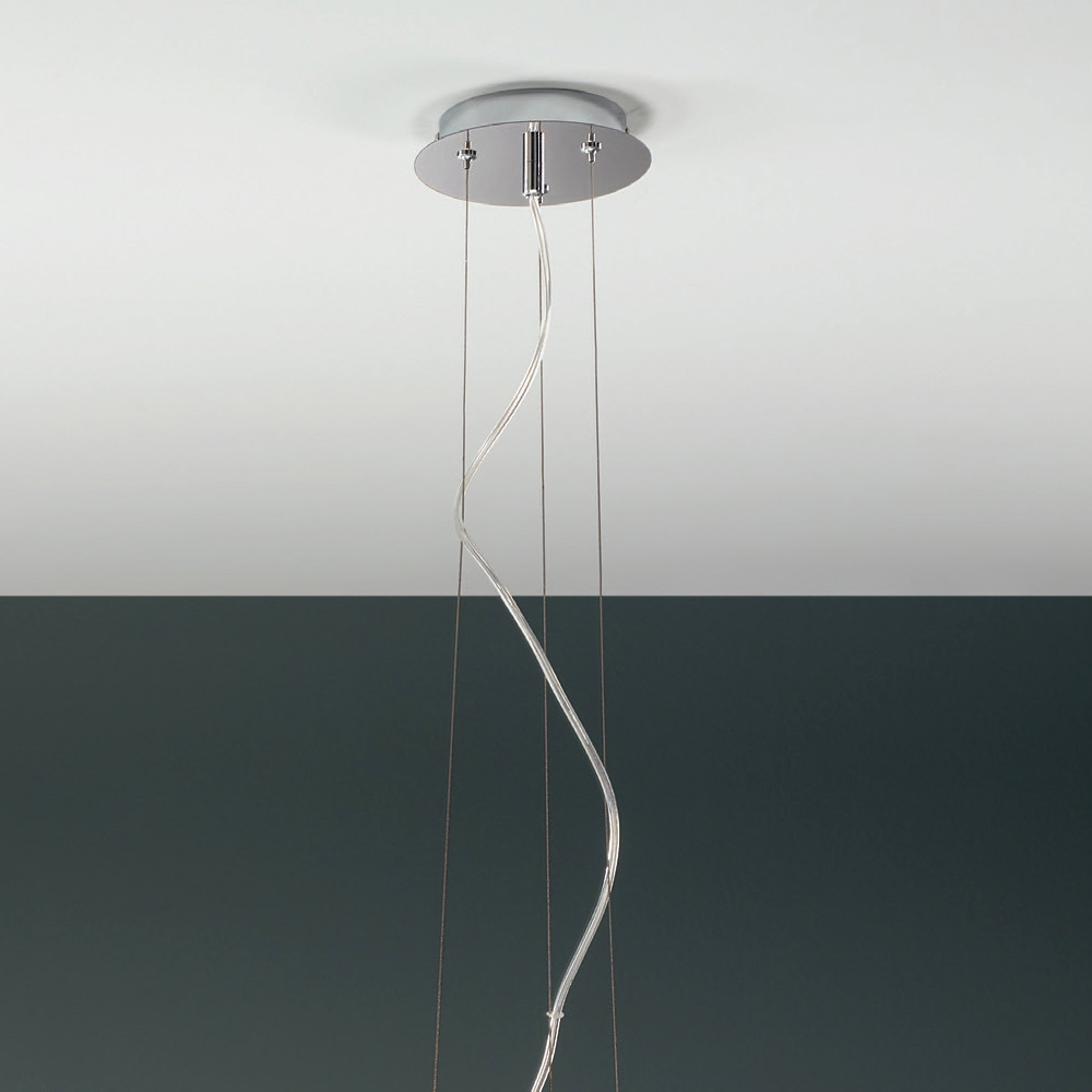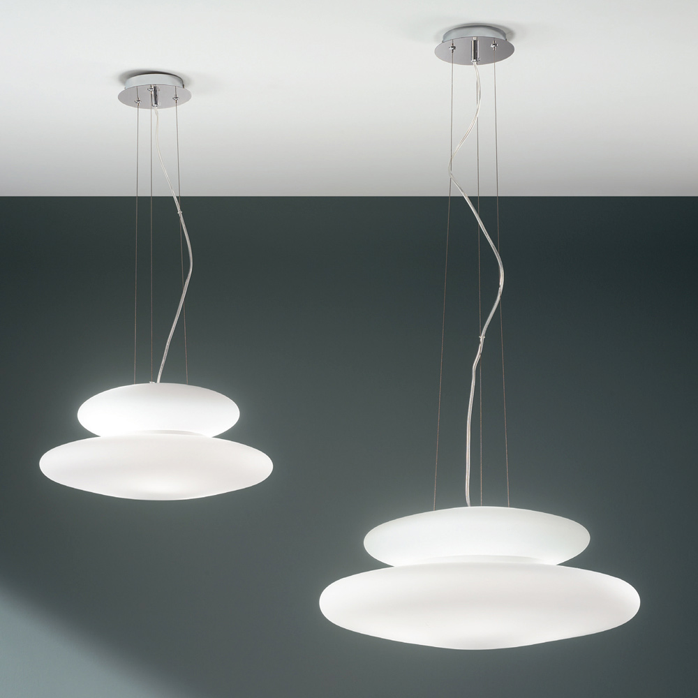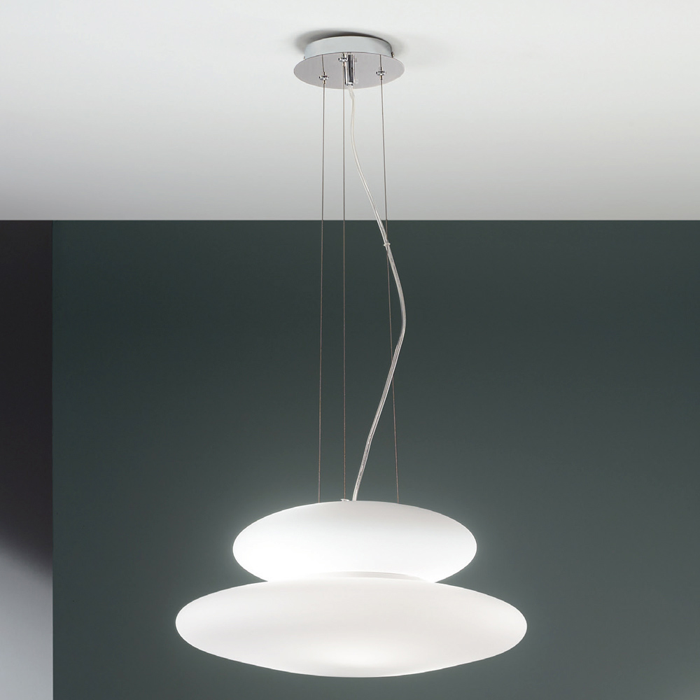 delikat och elegant själ som är en perfekt lösning för hemmiljöer med en modern estetik. Formad av två bevarade skivor i blåst glas, lyckas den erövra uppmärksamheten genom att bli rummets sanna huvudperson och samtidigt säkerställa en