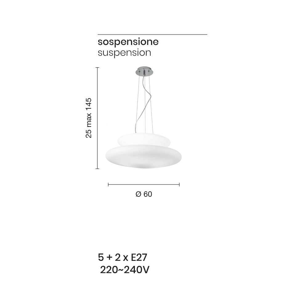 Tillgängliga storlekar:- diameter 60 x H 25 cm - H max 145 cm (5 + 2 x E27 220-230V);