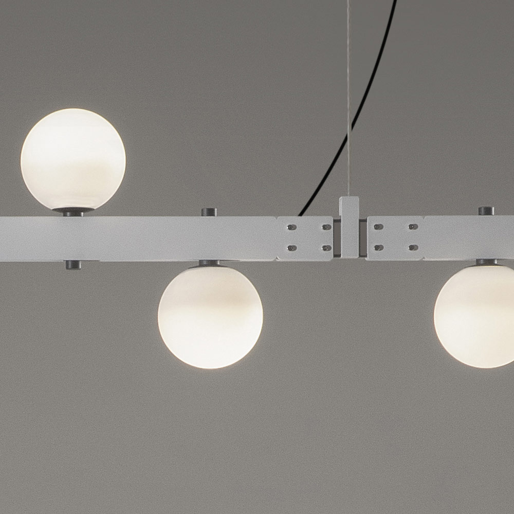 De bärande stängerna påminner om de tekniska strukturerna från det förflutna och de elektrifierade modulära strukturerna stödjer belysningskroppar ( blåsta glaskulor och spotlights ) som kan placeras i mängd och fritt arrangemang, utan användning av elektriska kraftkablar, för maximal uttrycksfrihet. .