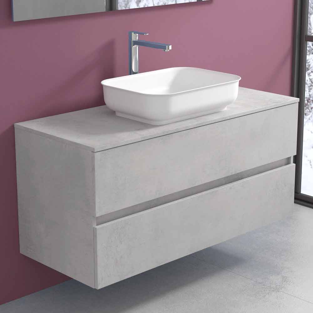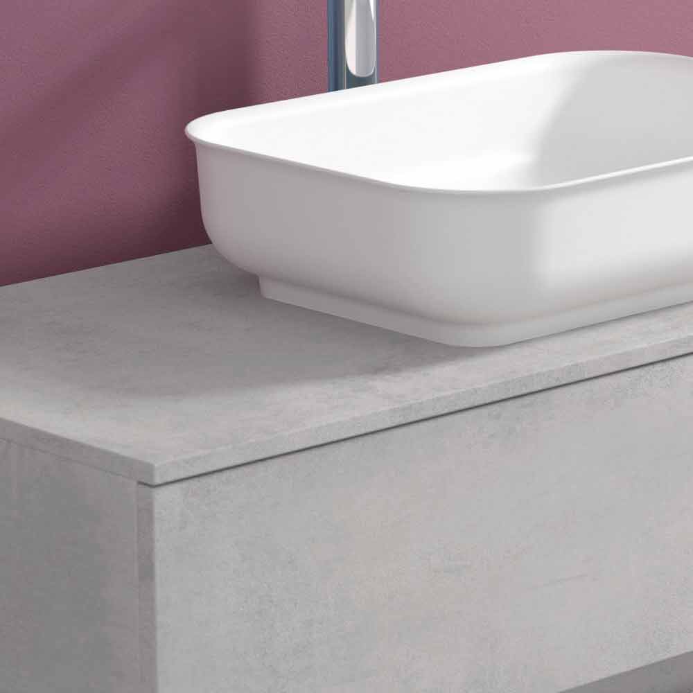 Dessa hängande badrumsmöbler med rektangulärt tvättställ för bänkskivor finns i fyra ytor för att bäst anpassa sig till miljön och skapa en elegant och välkomnande atmosfär.