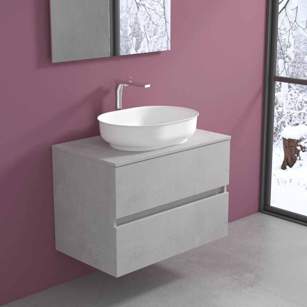Det är hängande badrumsmöbler med tvättställ med bänkskivor i original oval form som garanterar inte bara funktionalitet och funktionalitet utan också en sofistikerad och modern atmosfär för en tidlös design.
