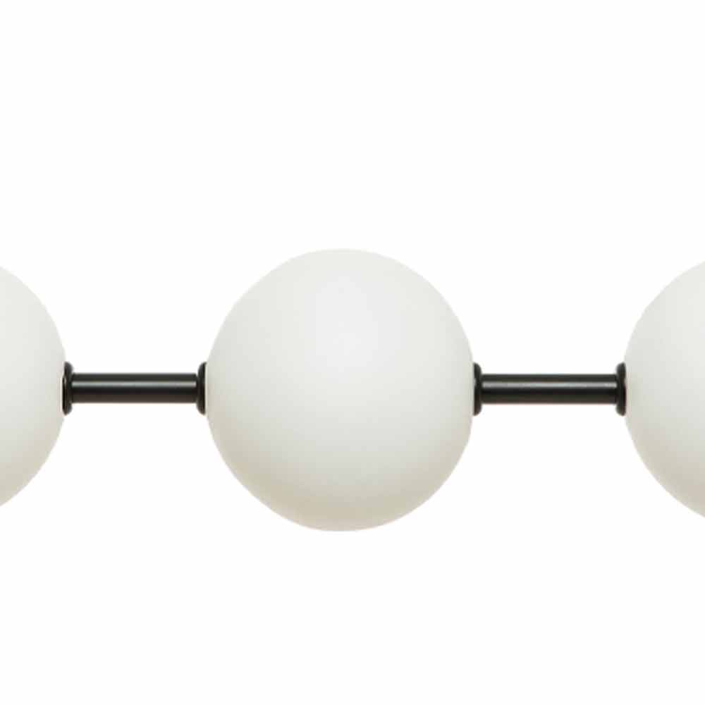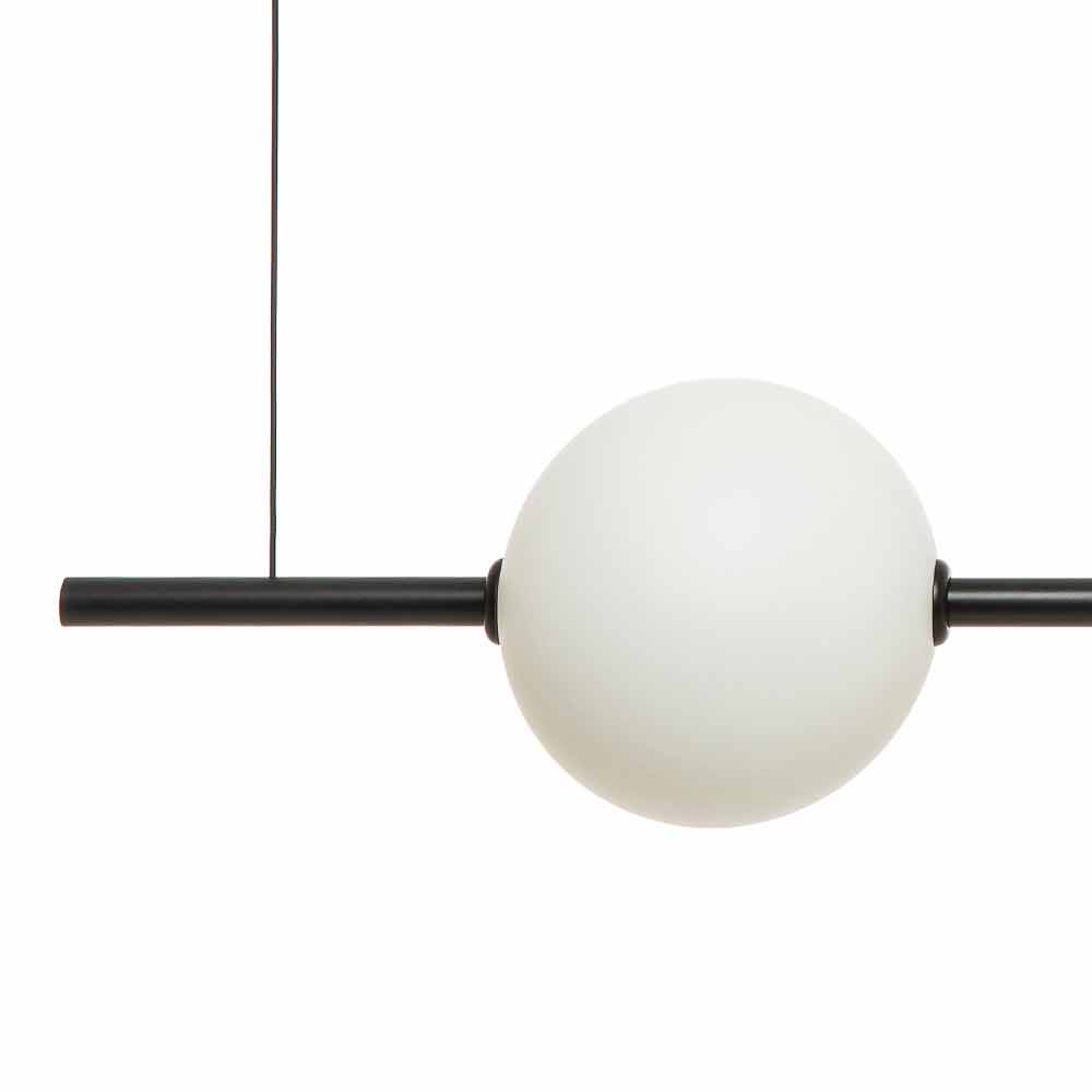 lysande sfärerna framstår som upphängda, vilket ger en raffinerad och unik atmosfär, perfekt för de mest samtida sammanhang, och lämnar en ljusstråle tack vare den