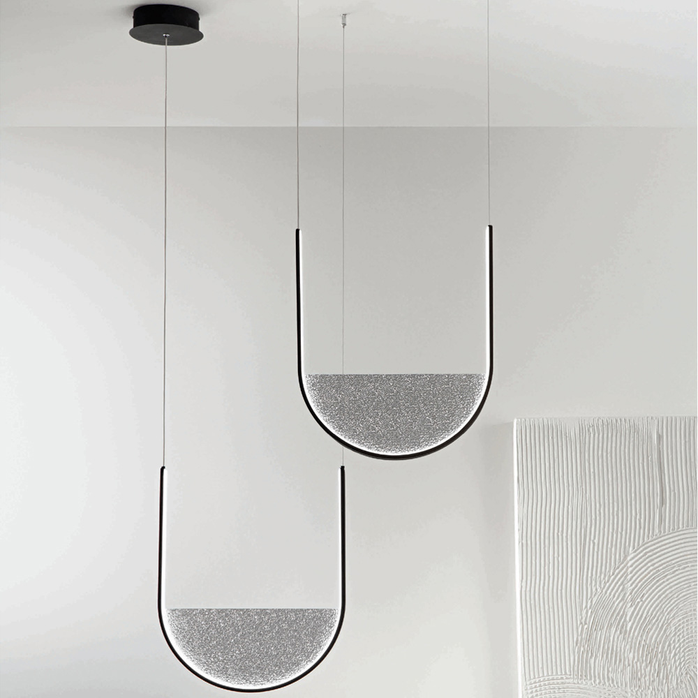 Pendel med dimbart LED-ljus i metall och glasinsats Tillverkad i Italien