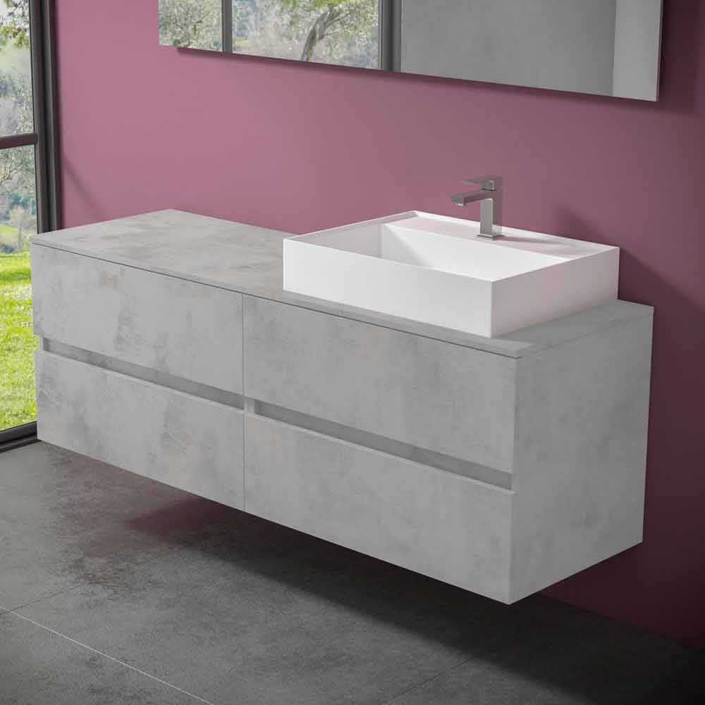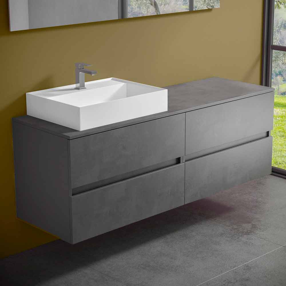 Det är hängande badrumsmöbler med tvättställ för bänkskivor som kännetecknas av en modern och tidlös design , med geometriska och väsentliga linjer för en modern och elegant atmosfär, utan att offra funktionalitet och funktionalitet.