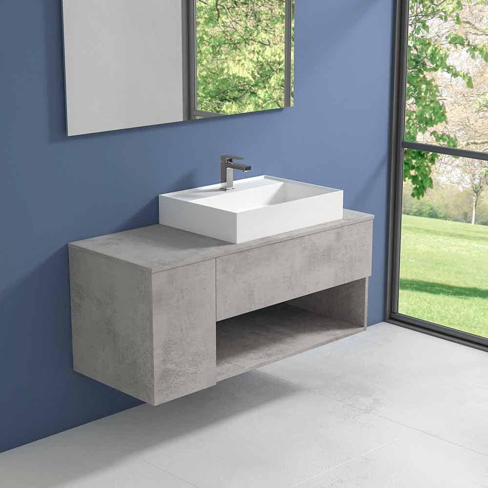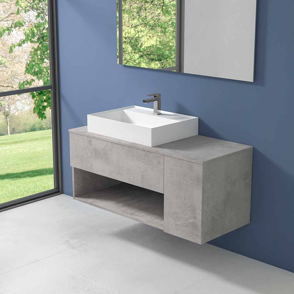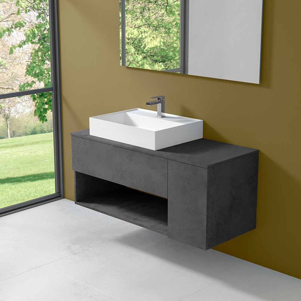 Tvättställ basenhet med låda och öppet fack är gjord av lamineras och vattenavvisande hydro W 100 träfiber, för att säkerställa bättre hållbarhet och förhindra skåpet från att skadas vid kontakt med vatten.