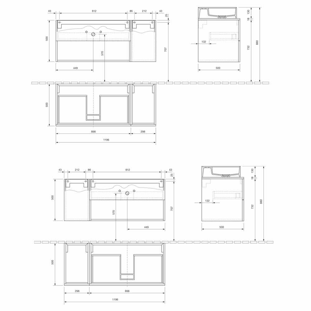 | Åtgärder | Handfat: L 120 x P 50 x H 50 cm Handfat: L 60 x P 45 x H 12 cm |