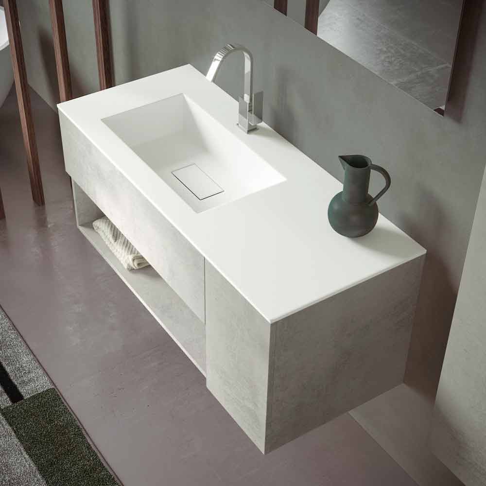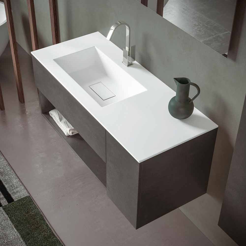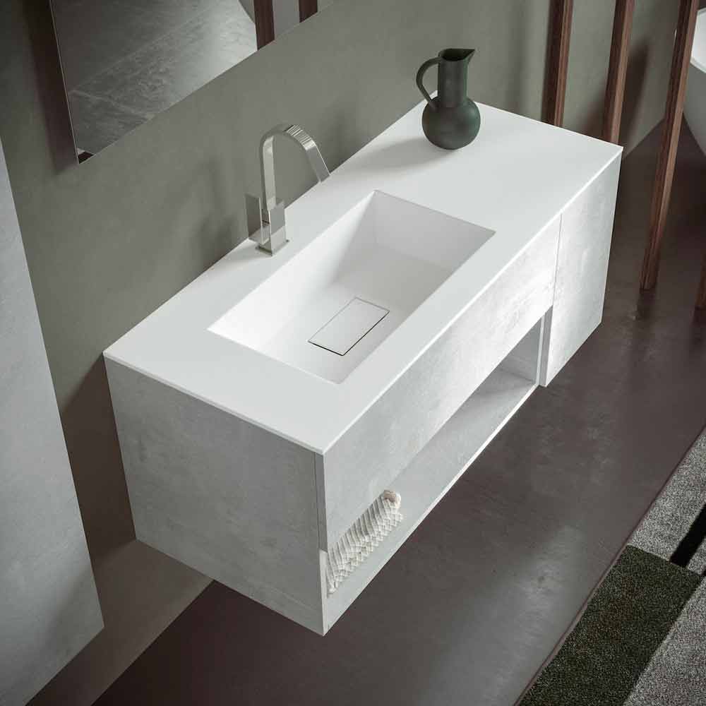 Dessa hängande badrumsmöbler kännetecknas av designens linjäritet och renhet för att inreda det moderna badrummet , med integrerad handfat och uppmärksamhet på detaljer för att inte försumma vikten av funktionalitet och funktionalitet.