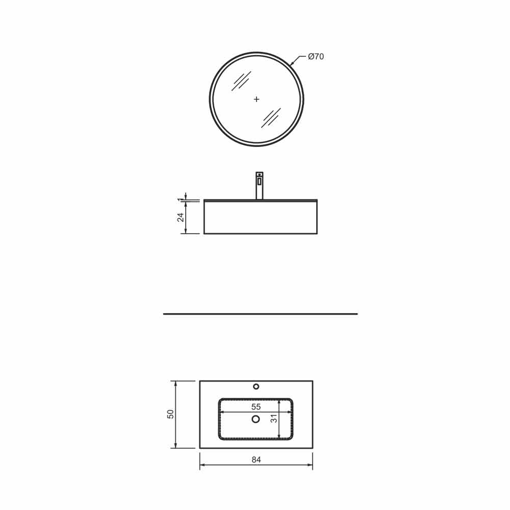 Kompositionen inkluderar:- tvättställsbas cm. 84x24x50,